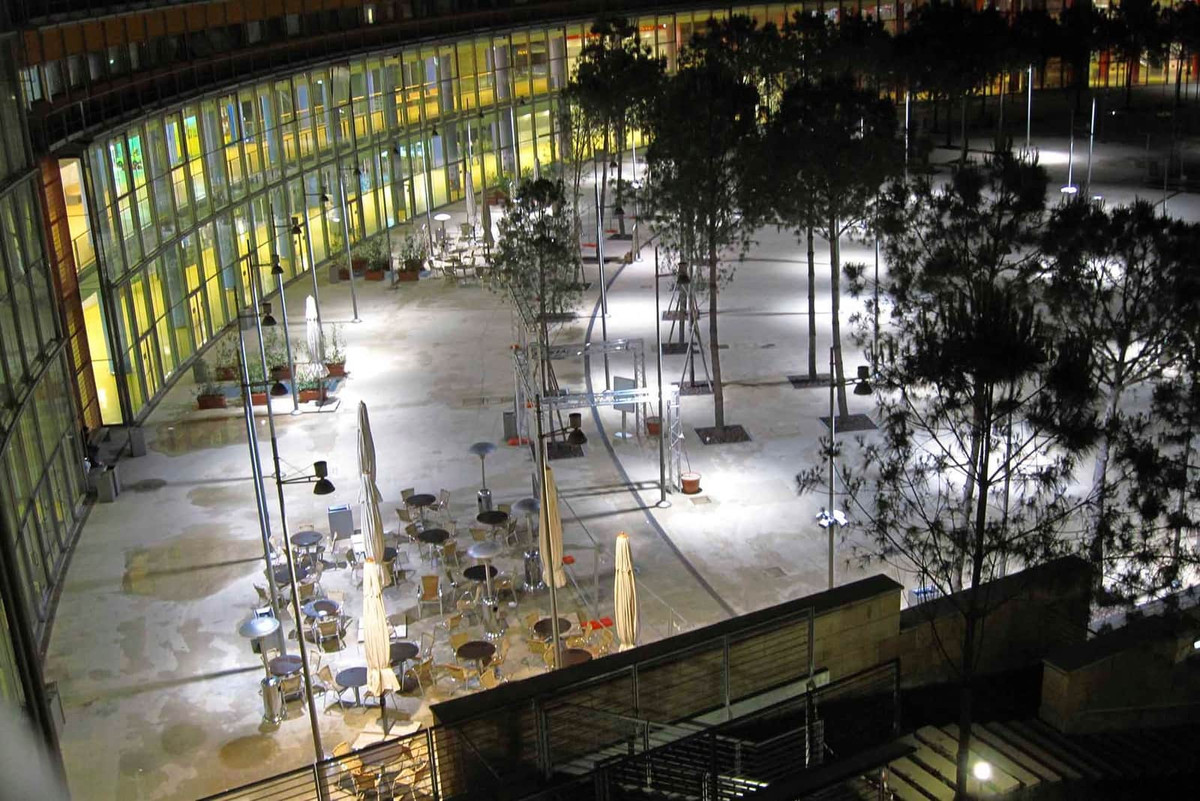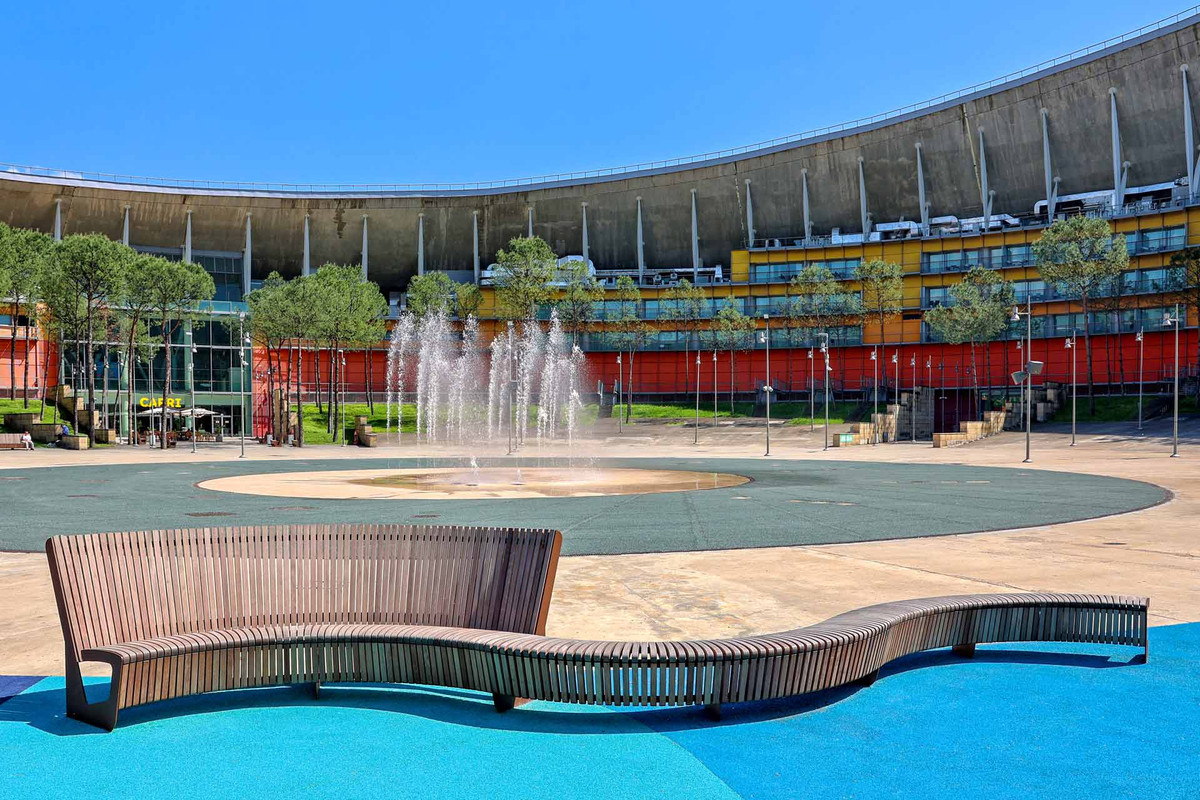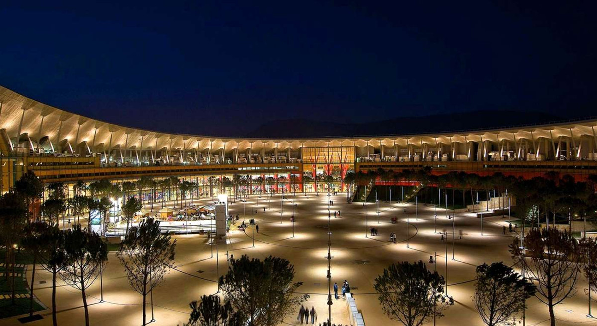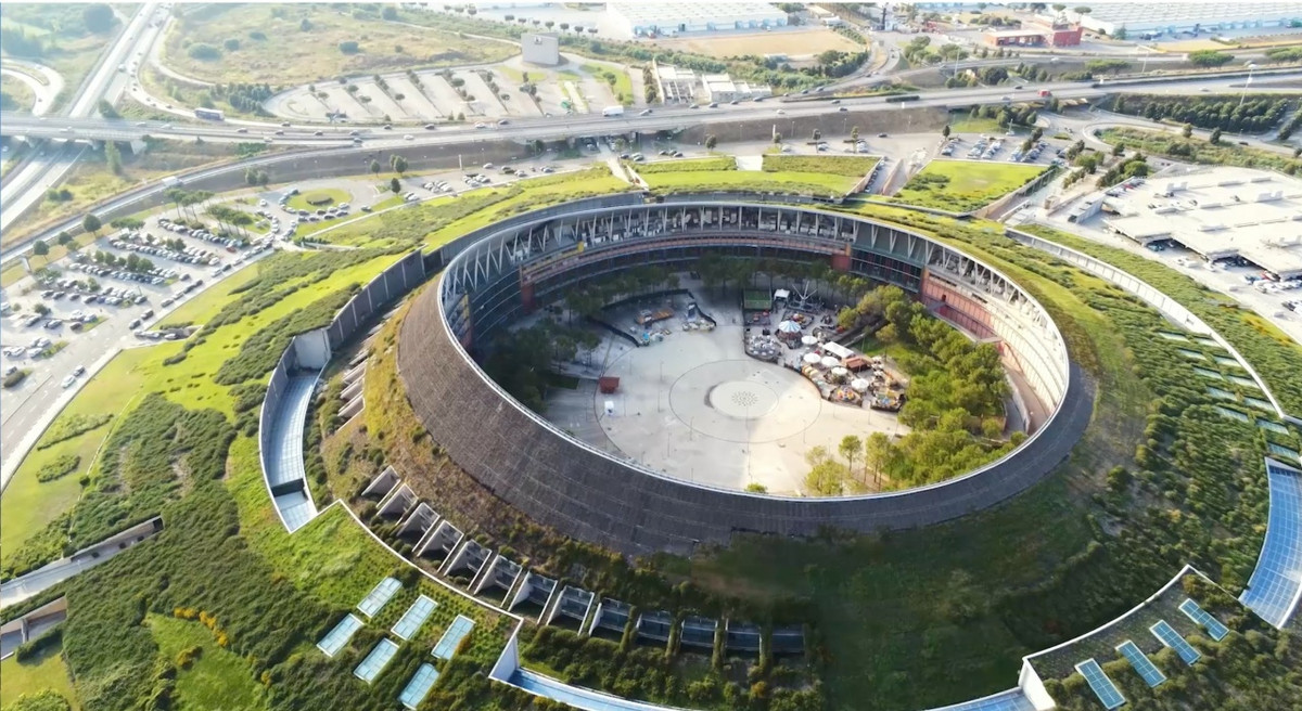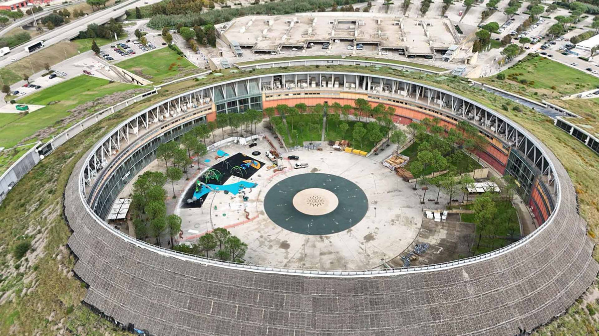 Архитектурный облик здания представляет собой набор из бетонных колец, каждое из которых имеет разный угол наклона. Сливаясь, они образуют структуру, имитирующую Везувий. Верхний край имеет высоту от 25 до 41 метра, а общий диаметр составляет 320 метров. Центральная площадь диаметром 160 метров разделена на три концентрические зоны: внутреннюю со сценой, предназначенной для представлений и концертов, среднюю, отведенную под магазины, и внешнюю, венчающую здание, с большим парком, усаженным соснами. На создание внутренней площади Ренцо Пиано вдохновили древнегреческие аналоги, игравшие роль рынков. Одновременно она стала многофункциональным пространством, которое можно трансформировать под разное назначение в зависимости от необходимости. При желании здесь можно развернуть сезонный рынок (например, под Рождество), установить сцену или устроить парк развлечений для детей.