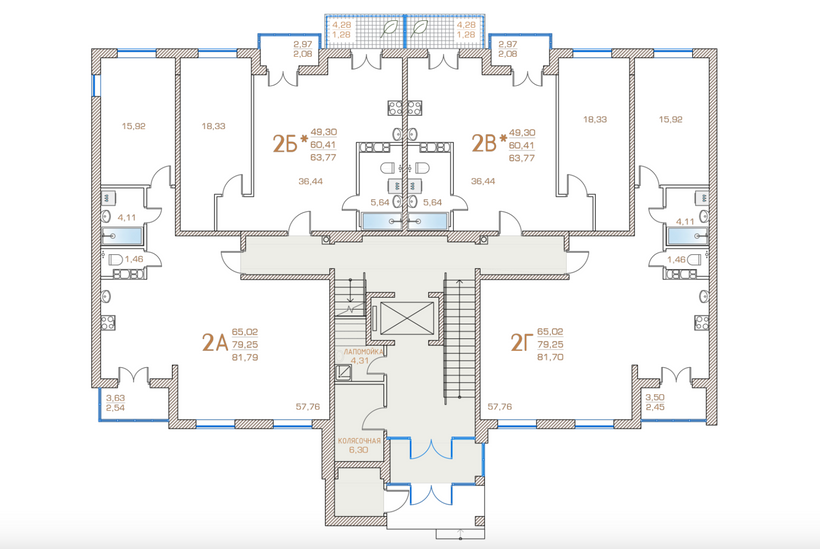 Планировки в них свободные, площади по 62 и 81 квадратный метр. Высота потолков — 2,7 метра. Окна в квартирах увеличены, лоджии идут с панорамным остеклением. На первом уровне предусмотрены квартиры с террасами со стеклянным ограждением и навесами от дождя.