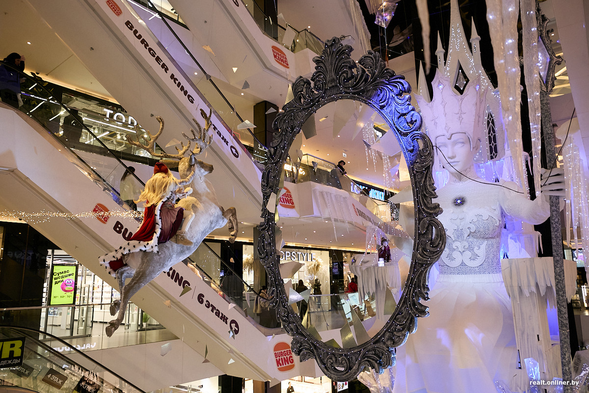 Уже по традиции ажиотаж и округленные глаза у посетителей вызывают новогодние инсталляции в Dana Mall. Но в этом году и другие ТЦ решили посоперничать: в Galleria Minsk появилась впечатляющая инсталляция по мотивам сказки «Снежная королева».