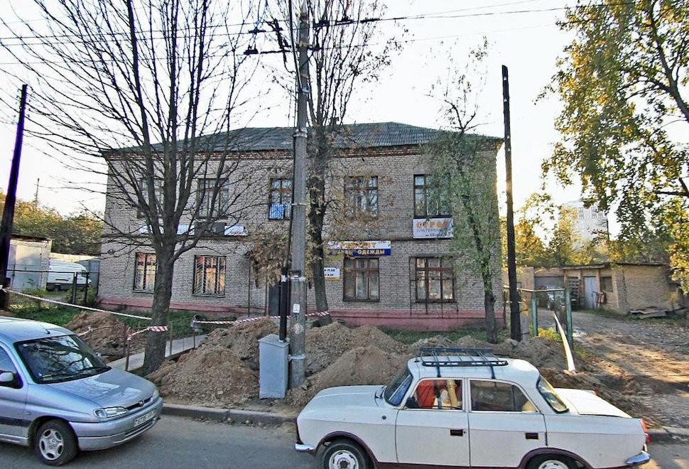 Напомним, каким дом на Щорса, 15, был раньше: скатная крыша, кирпичные фасады. В помещениях работали небольшие бытовые организации.