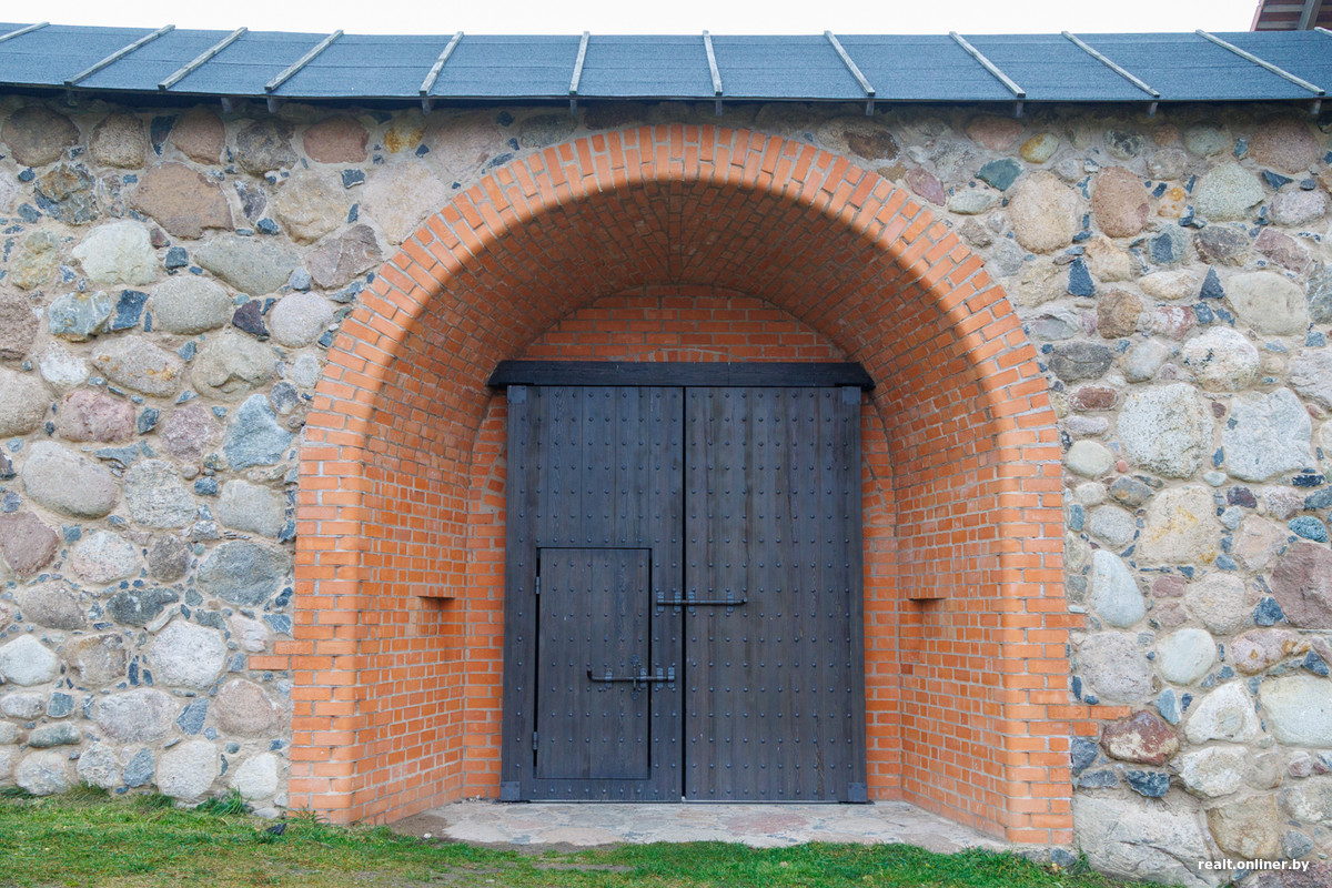 Другое дело — главные ворота в замок. По проекту, к ним будет вести подъемный мост, как в Средневековье (отверстия для цепей конструкции есть по бокам от арки входа). Даже ров планируют выкопать для пущей убедительности.