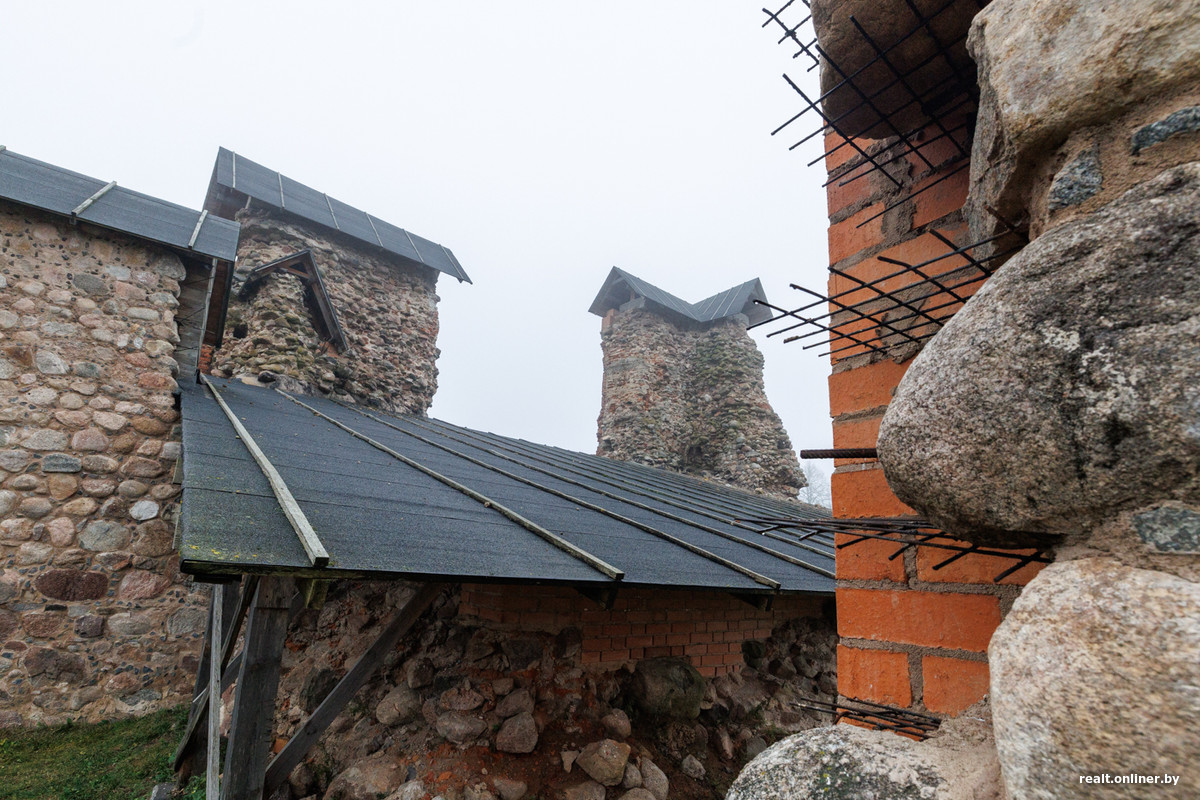 Когда начнется новый этап реконструкции, на двух участках стен замка, примыкающих к донжону и сейчас закрытых рубероидом, воссоздадут боевые деревянные галереи. Попасть в княжеские покои в башне, кстати, можно было только с уровня галерей.
