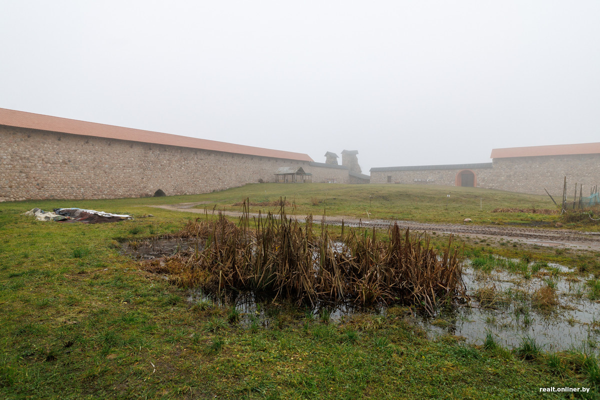 Ближе к восточной стене видим заросшие камышами впадины — это воронки от снарядов, и они здесь останутся. Историки хотят сохранить в замке следы одновременно и Средневековья, и Первой мировой войны, когда цитадель получила наибольшие разрушения.