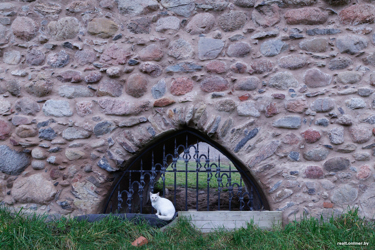 — Падчас абстрэлаў у ходзе Першай сусветнай вайны частка паўночнай сцяны нахілілася, і рэстаўратары 1930-х гадоў зрабілі тут контрфорс (справа от главного входа. — Прим. Onlíner). Спачатку яго хацелі разабраць, бо ён жа не гістарычны, а ўсе падмуркі ўжо і так умацавалі, таму ён нібыта і не патрэбны. Але я прапанаваў захаваць гэты контрфорс, — вспоминает Олег Дернович.