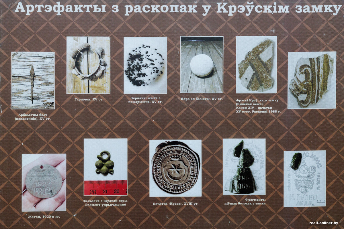 Экспонатов, в том числе найденных на раскопках городища, а также баек для музея уже предостаточно. По одной из легенд, например, Кревский и Лидский замки строили два брата-великана, которые в процессе перекидывались кельмой. И эту кельму, говорят, нашли в стенах донжона. Поскольку металл в Средневековье был материалом дефицитным, эту находку историк рассматривает как специальную «строительную жертву» цитадели.