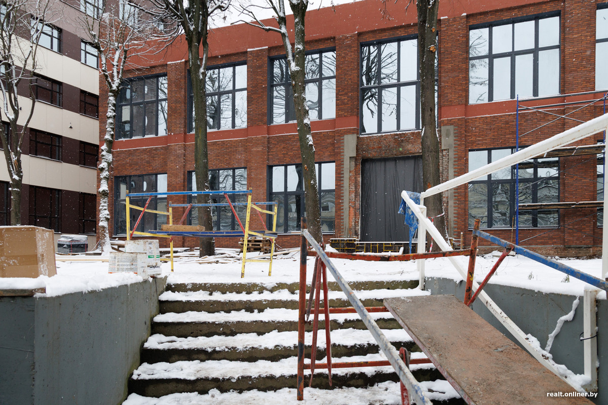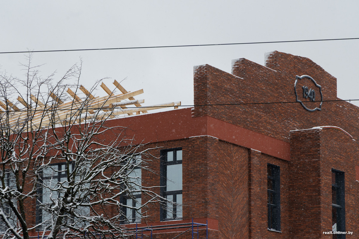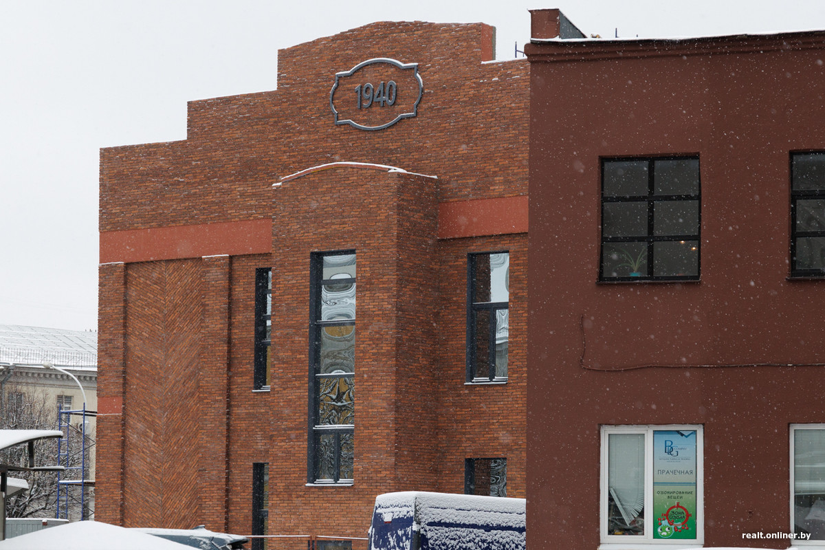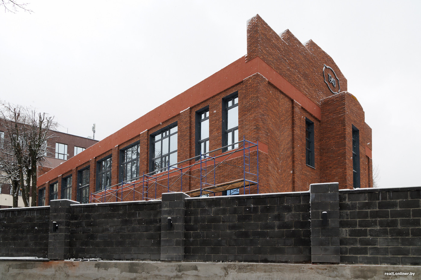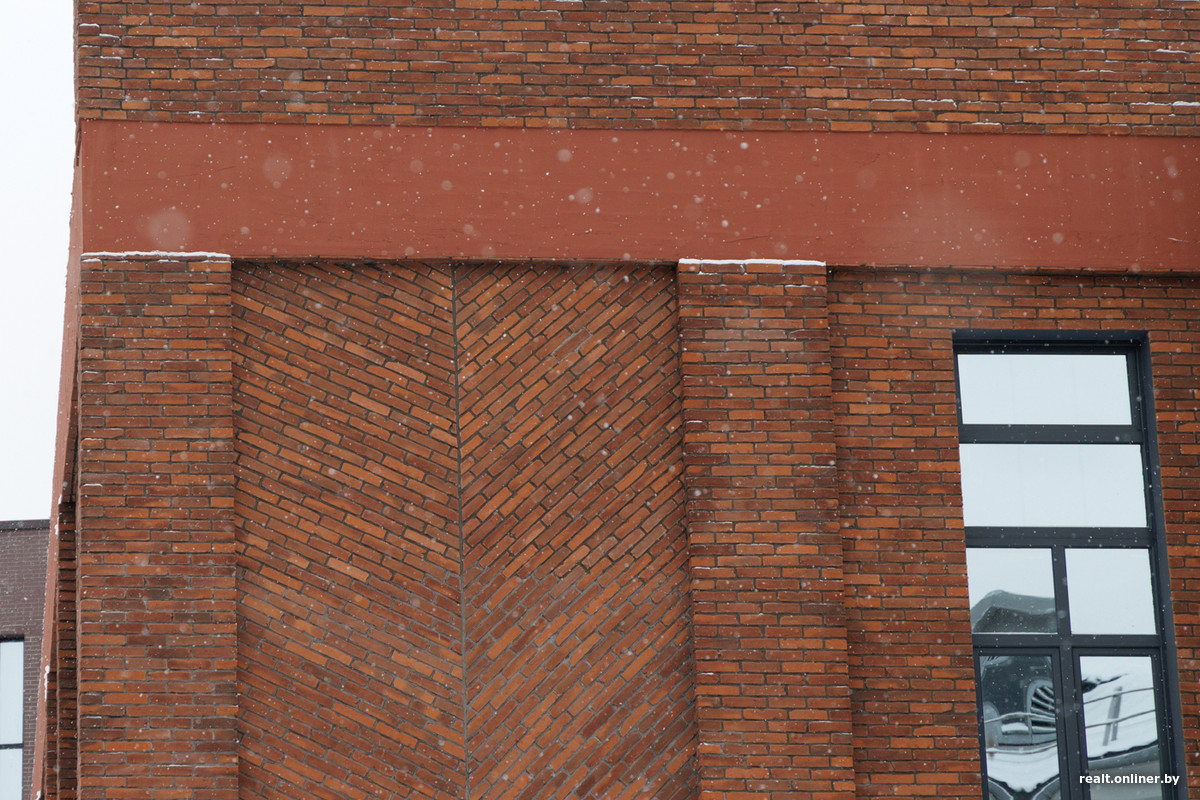 Все лето и осень на объекте велись работы. И сегодня мы можем видеть, как изменилось здание. Никаких «отсылок» к периоду граффити привносить не стали. Все строго и четко, можно сказать, в британском стиле. При этом на фасаде за счет «наклона» кирпича создали интересный рисунок, не дающий глазу заскучать.