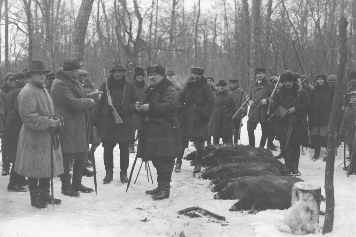В электронных архивах сегодня можно найти фотографии охот в Маньковичах. На фоне дворца — десятки подвешенных туш кабанов. По современным меркам это выглядит шокирующе, если не варварски. Но в польских источниках Кароля Радзивилла описывают иначе: как хозяина, сумевшего организовать образцовое охотничье хозяйство и боровшегося с браконьерами, которых в этих местах хватало.