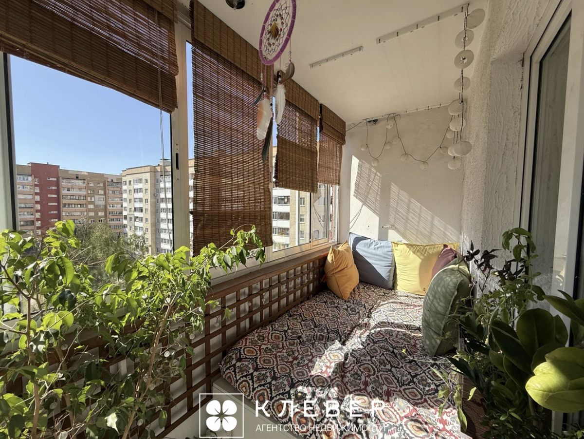 Лоджию квартиры на улице Лукьяновича можно назвать полноценной оранжереей. И опять же, такой креатив воплощен в панельке 2004 года постройки. Остальные комнаты, кстати, обставлены тоже весьма интересно.