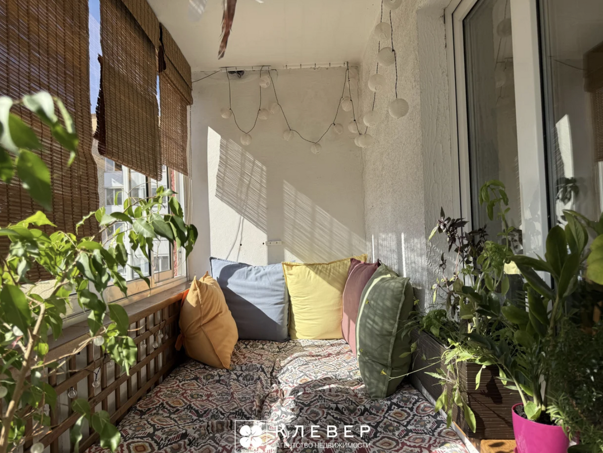 Владелец квартиры на Неманской устроил на своей лоджии уголок в средиземноморском стиле. Благо размеры лоджии позволяют — она имеет необычную геометрическую форму и занимает целых 10 квадратных метров. Сам дом выглядит привычно для Каменной Горки — это обычная панелька 2011 года.