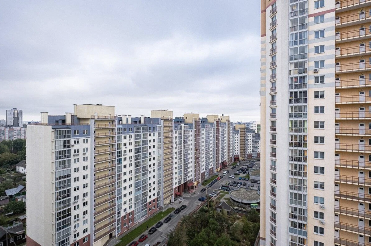 Вдоль окон поставили барную стойку с высокими мягкими стульями. Кроме нее здесь удалось поместить лишь шкаф. Внимание привлекает массивное изображение леса на стене. Но главная фишка здесь — это виды. Сидя за барной стойкой, можно наблюдать панораму Сельхозпоселка.