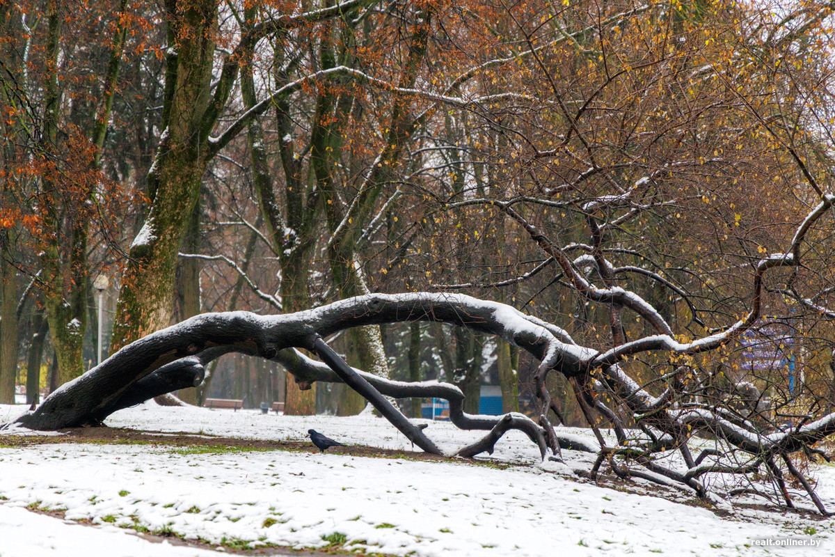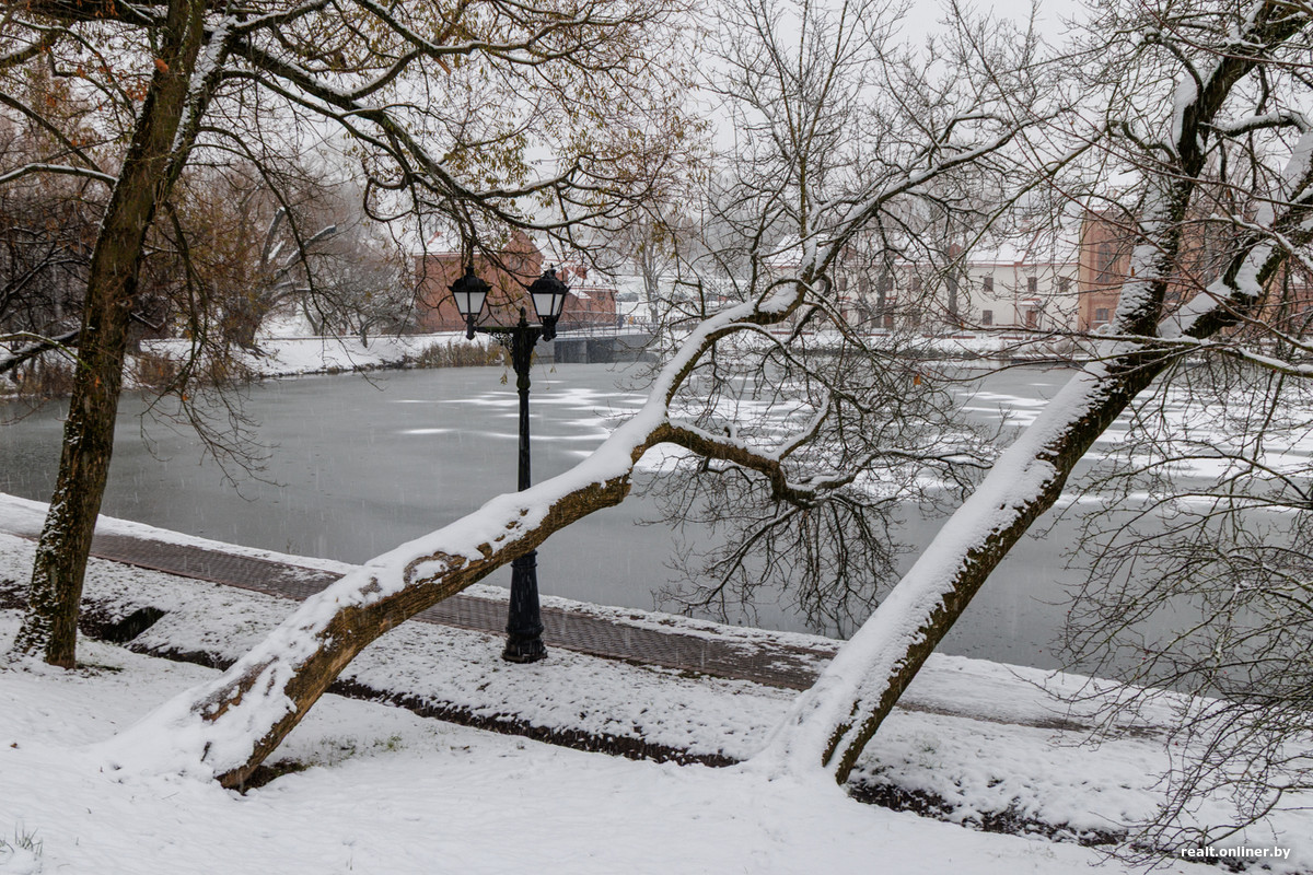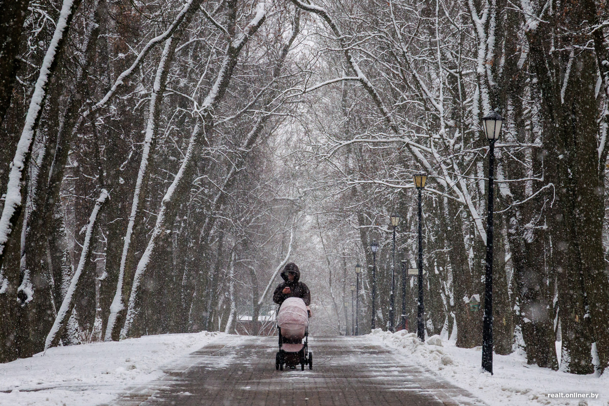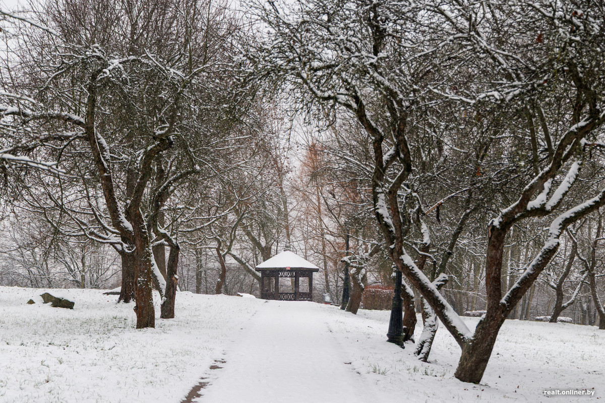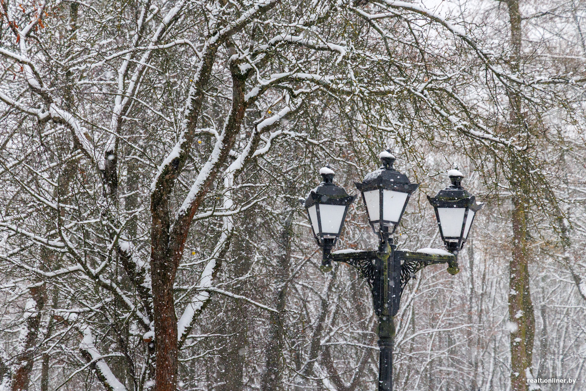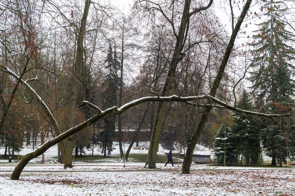 Началось! Скоро официальный старт зимы, на днях выпал первый пушистый снег, а город уже активно украшается новогодним декором. Соцсети наполнились восторгами и фотографиями с «летящими наверх хлопьями». Onlíner тоже прогулялся по столичным паркам с целью запечатлеть волшебство. Засыпанные капюшоны, белые ветки деревьев, приспосабливающиеся к новым условиям белки и экспериментальные снеговики — так Минск встретил первый снег.