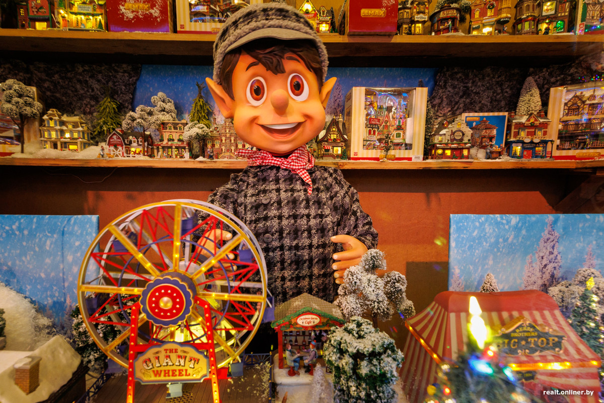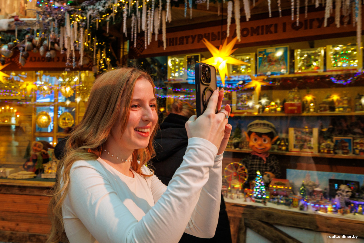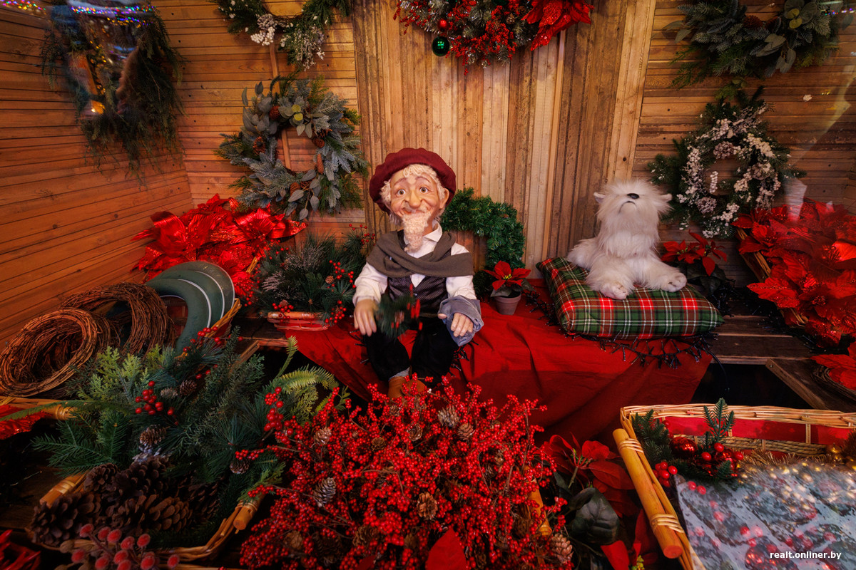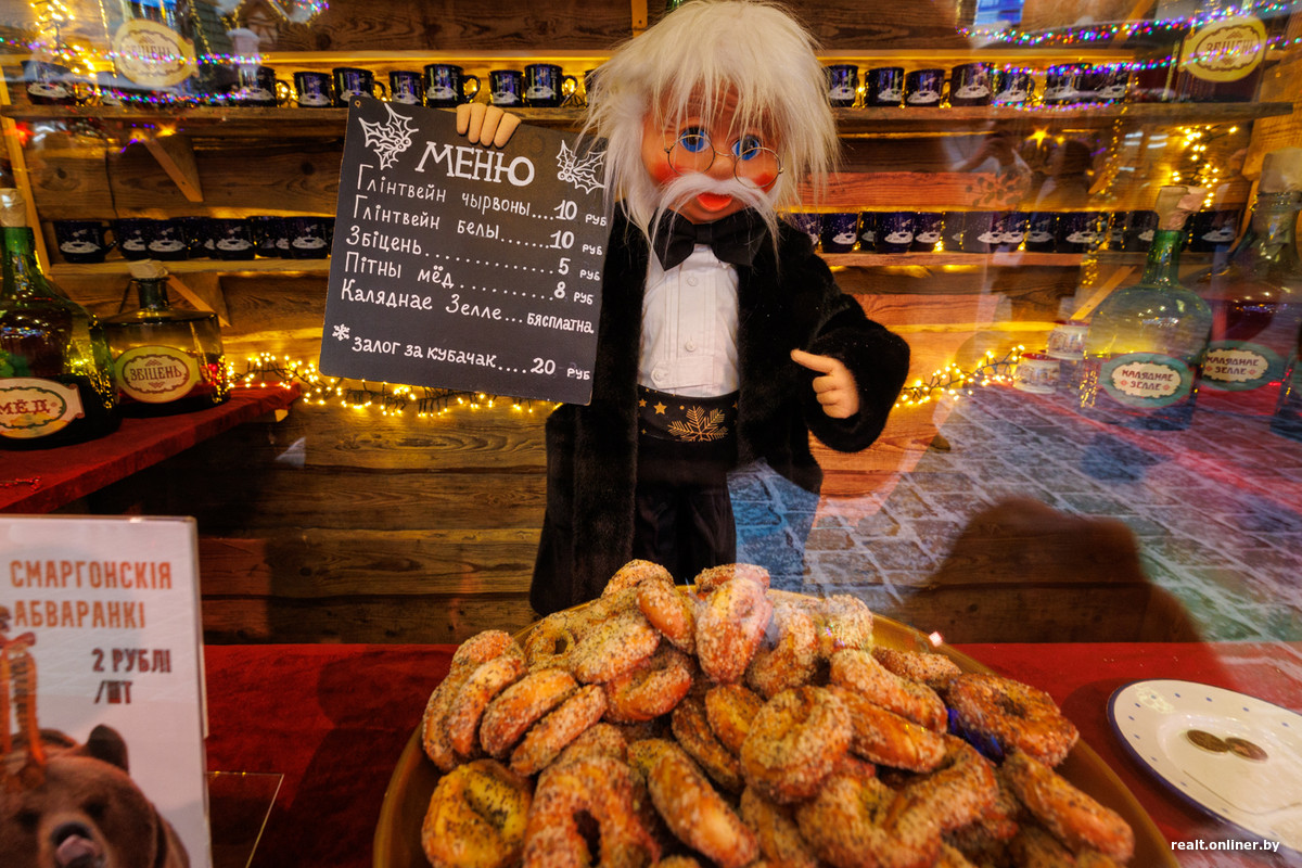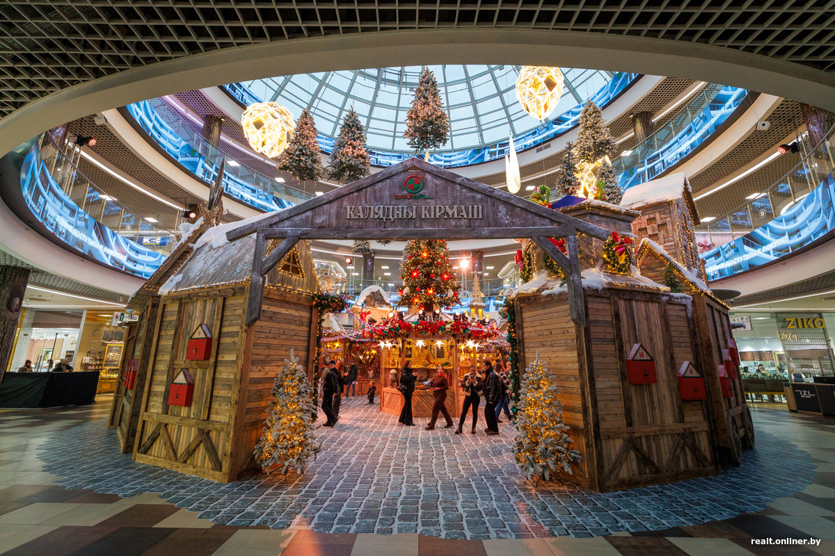 Инсталляция называется «Калядны кірмаш». Она засыпана искусственным снегом, а ее составляющие двигаются и издают звуки. Конечно же, все представленное в деревянных домиках — это украшения, муляж, купить это нельзя. Зато можно изучать, фоткаться, прогуливаться вдоль торговых павильонов и ловить новогоднее настроение. Что и будут делать минчане в ближайшее время.