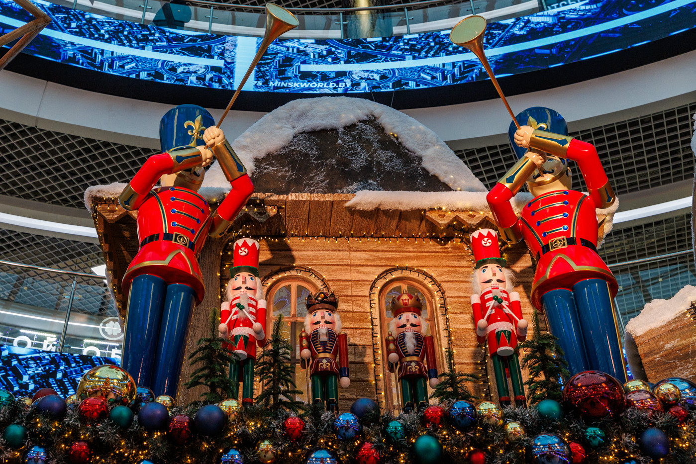 Несколько недель подряд площадка в центральном атриуме Dana Mall была завешена тканью, чтобы ни один зоркий взгляд не смог преждевременно увидеть будущую новогоднюю композицию. Люди пытались заглянуть внутрь, рассмотреть тени, но все безуспешно — интригу удалось сохранить. А еще минчане гадали, сможет ли этот торговый центр переплюнуть инсталляцию, которая недавно появилась в Galleria Minsk. Да, в этом году два объекта, сами того не подозревая, участвовали в настоящей битве. Сегодня с утра посетители Dana Mall уже могли лицезреть новогоднюю красоту.