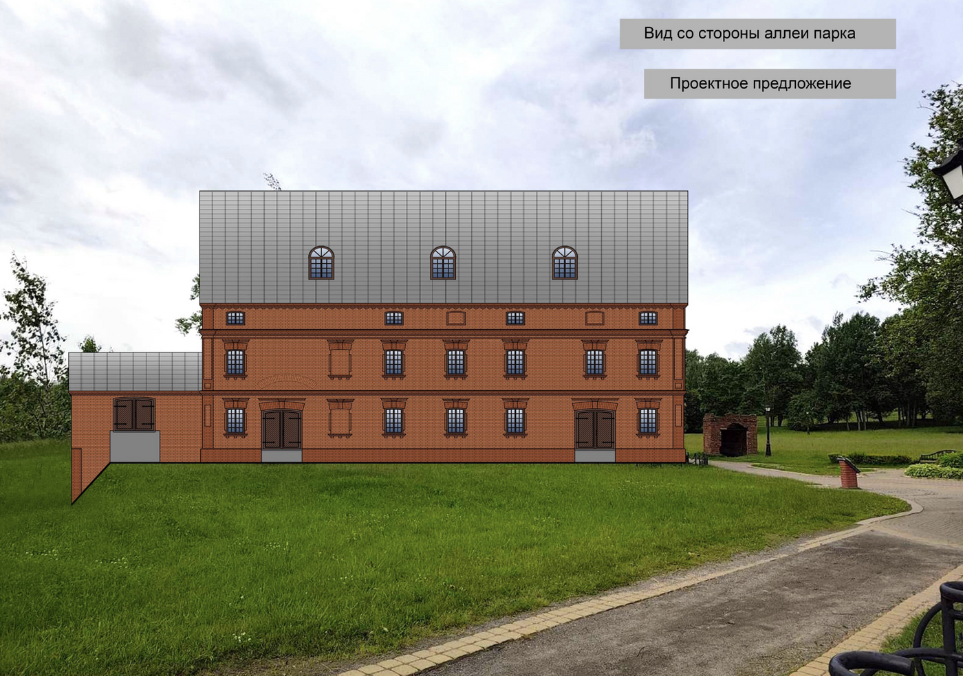 К мельнице примыкала небольшая пристройка со стороны реки. Она не сохранилась, но при реставрации ее планируют воссоздать. Пока здание из красного кирпича выглядит не самым лучшим образом: