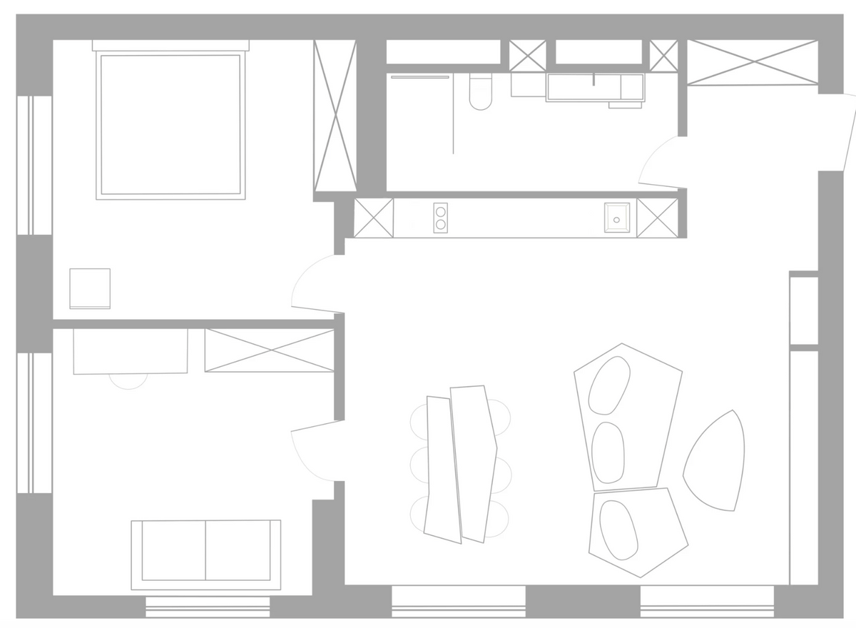 О получившемся дизайне рассказывает портал interior.ru. По словам Влада, плюсом квартиры была ее свободная планировка — на площади 70 кв. м можно было реализовать любую задумку. Не обошлось без перепланировки: лоджию объединили с основным пространством, получив достаточно места для полноценной гостевой комнаты и при этом сохранив большую общую гостиную зону.