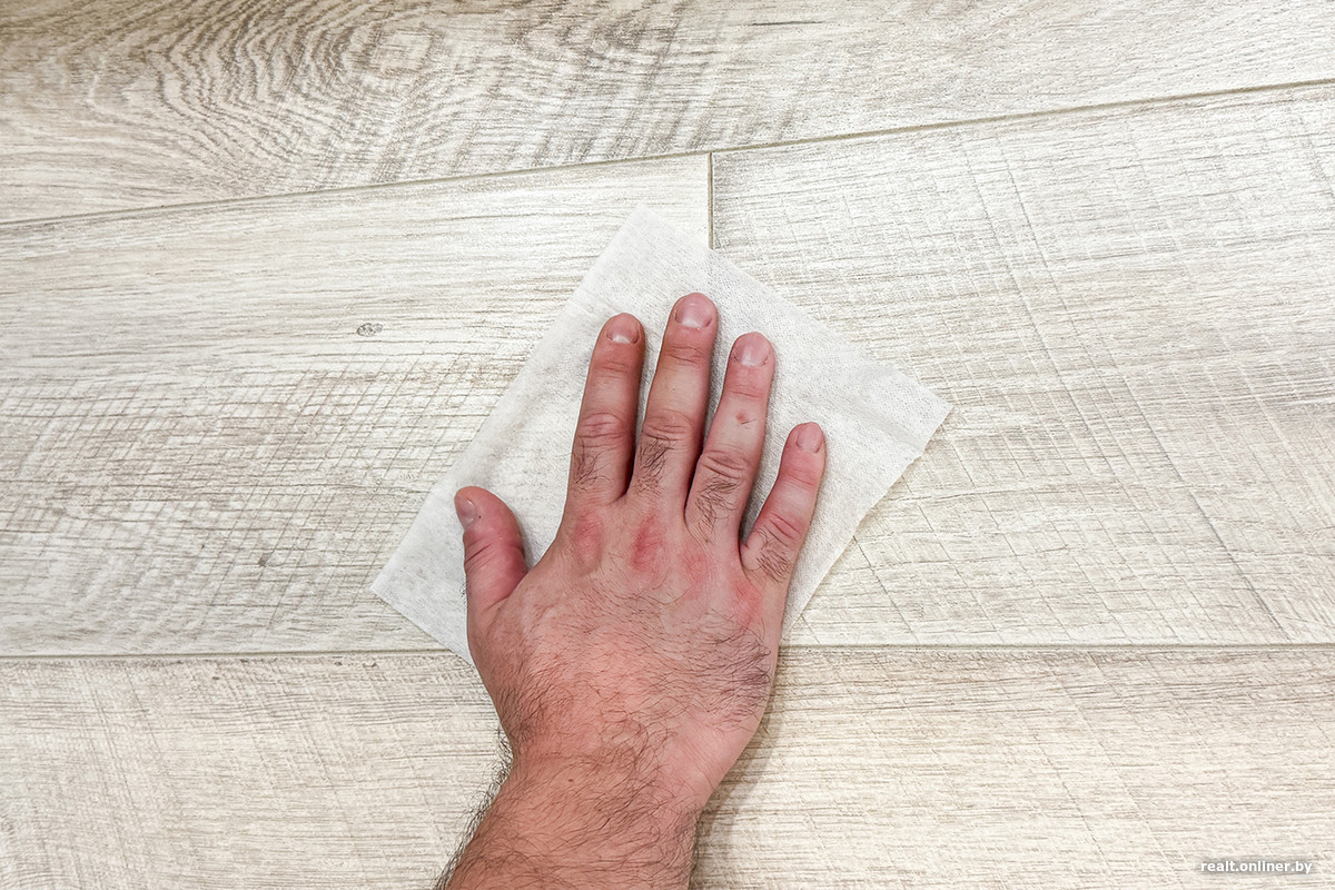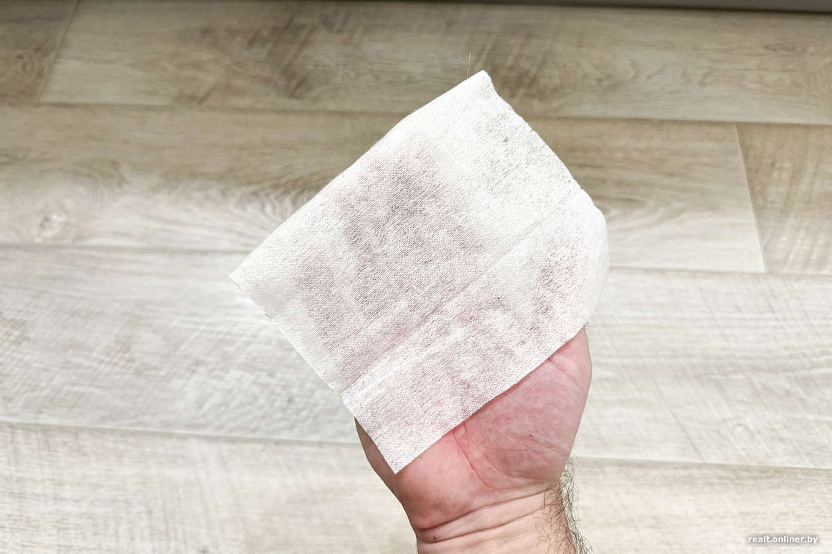 Даже без промежуточного промывания швабр на станции «кофейного следа» на ламинате не осталось — влажная салфетка после проверки была практически белой. Другие методы влажной уборки (даже 2 вращающиеся швабры) не могут похвастаться таким.