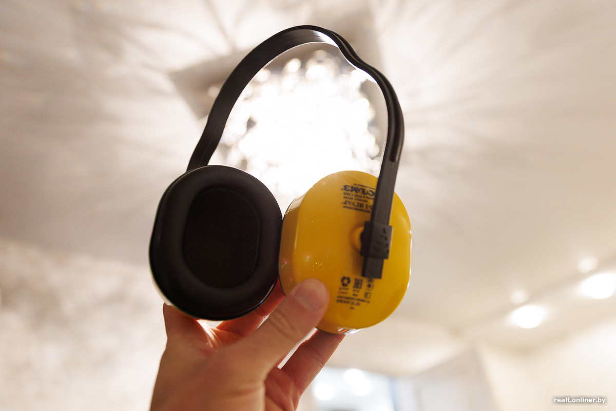 Сергей показывает нам желтые строительные наушники — подарок от друга. Но даже они не спасают от шума.