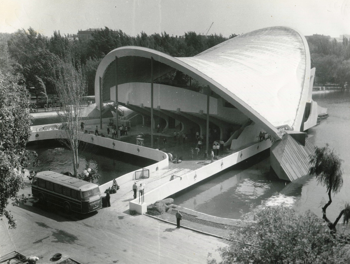 В 1978 году в парке Глобы появился настоящий магнит для горожан — летний театр с гиперболоидной крышей, которая местным жителям сразу напомнила ракушку. Архитектор О. Петров спроектировал конструкцию из двух стальных рам, объединенных вантами и опирающихся на железобетонный фундамент тонкими опорами. Они поддерживают нависающую трибуну и сценический блок, превращая театр в центр всей рекреационной зоны. Когда-то его даже изображали на открытках и магнитиках, а сами залы собирали зрителей на концерты и спектакли.
