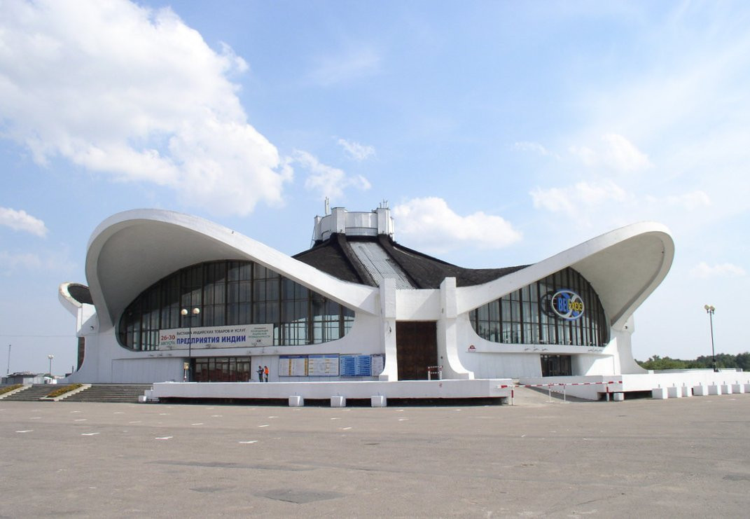 «Внешне сооружение очень красиво. Оно напоминает распустившийся цветок с чуть удлиненными и загнутыми кверху лепестками, который как бы накрывает собой горловину огромной хрустальной вазы», — писали газеты конца 1980-х годов. Конструктивное решение здания требовало немалого мастерства и инноваций при производстве строительных работ. Авторы проекта разработали уникальную по тем временам систему перекрытия павильона — с помощью пяти гиперболических параболоидов, выражающих живописность и легкость архитектурных форм. Между ними в строго заданной геометрии был натянут металлический каркас: ванты, на которые набрызгом укладывался бетон. Внутренняя площадь — 4500 кв. м, и при этом ни одной колонны, что достигнуто с помощью вантовой системы.
