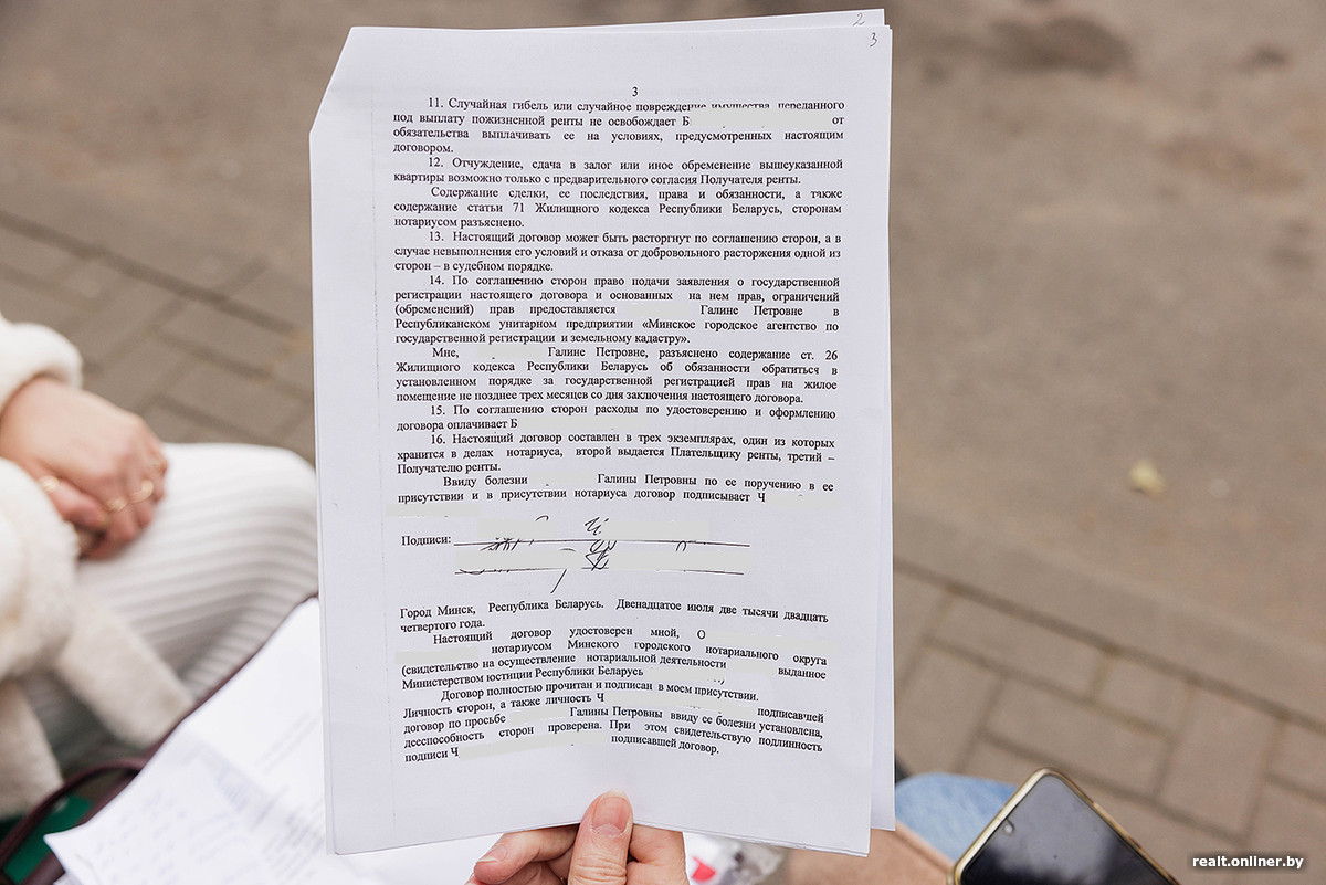 Родственникам из Жодино Галина Петровна казалась отшельницей. В Минске же у нее была довольно бурная социальная (и юридическая) жизнь. Понимая, что слабеет, женщина начала искать «преемника» — того, кто будет помогать ей в бытовом плане в обмен на квартиру. Какие гарантии у «наместника»? Завещание, написанное на его имя.