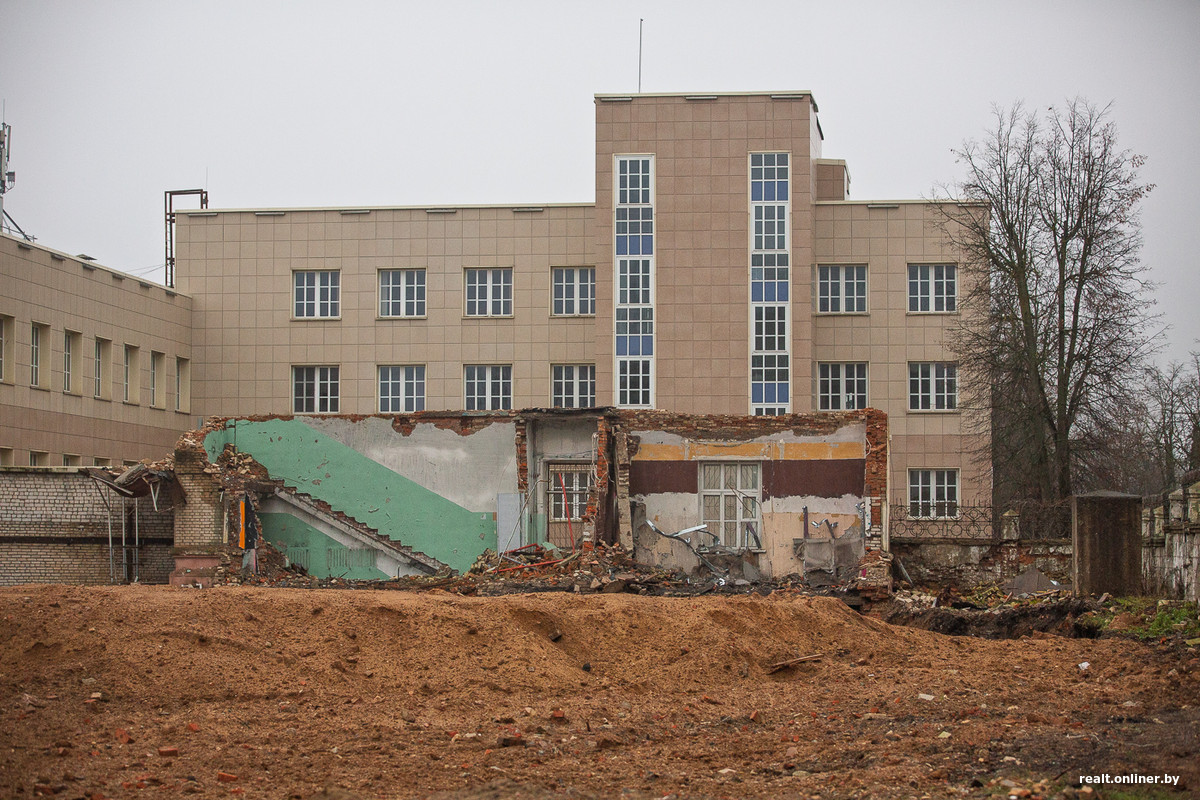 Прежде чем строить, УКСу пришлось сносить. Много сносить. На территории электромеханического завода «Агат» (расположен в границах ул. Волгоградской — пр. Независимости — ул. Кедышко) насчитали 38 лишних зданий 1950-х годов постройки. Причем среди них были очень даже масштабные строения. Да одни трубы котельной чего стоили! Так выглядел «Агат» еще в начале нынешнего года.