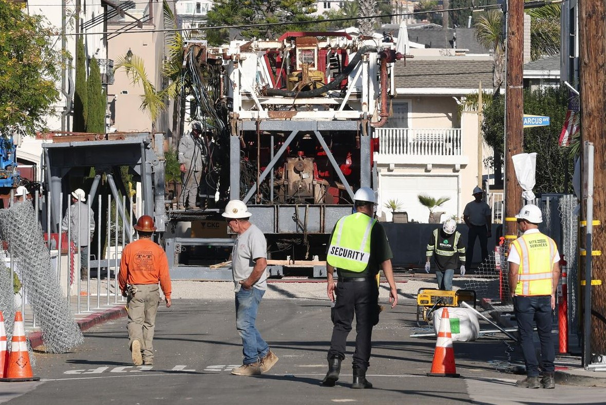 Сейчас прямо посреди улицы появилась временная вышка высотой около 33 метров, которая теперь круглосуточно откачивает скапливающуюся нефть. Власти Ньюпорт-Бич утверждают, что в итоге скважину должны запечатать специальным цементом.