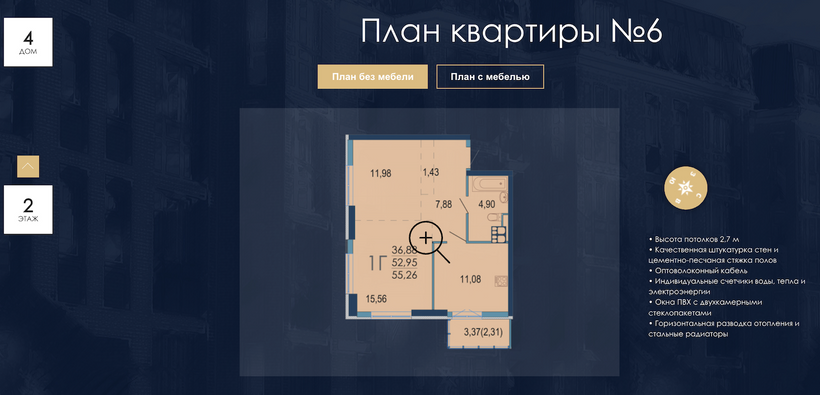Дольщикам дома №4 доступны две однокомнатные квартиры. Стоят они столько же, как и их собратья в доме №3 и идентичны им по размерам. А вот двухкомнатные квартиры в этом столбике отличаются от своего брата и размерами, и ценой. Здесь продают пять двушек размерами от 67 до 130 «квадратов».