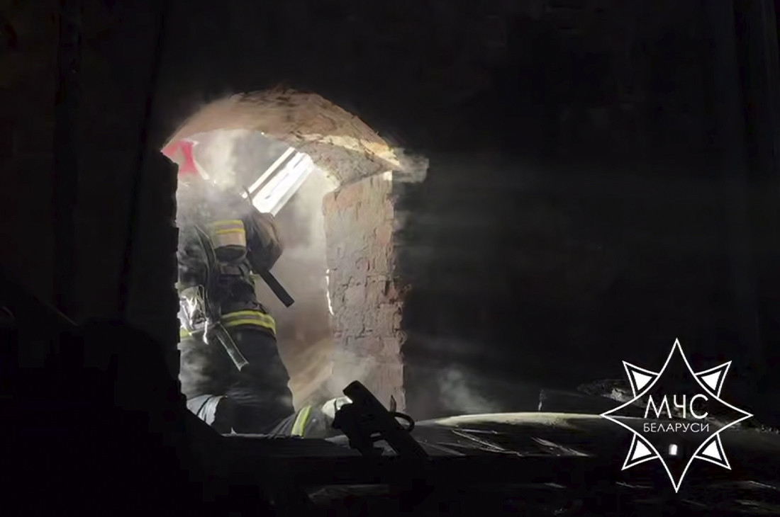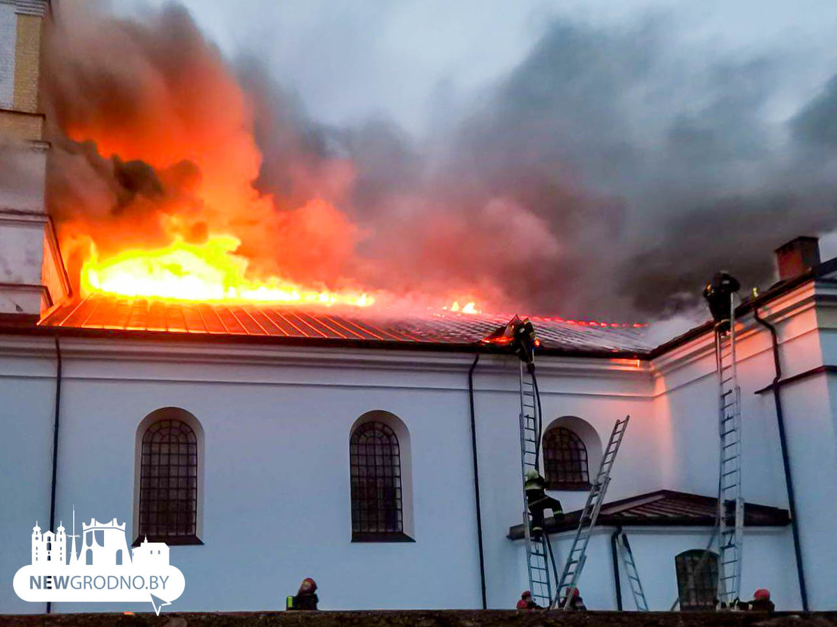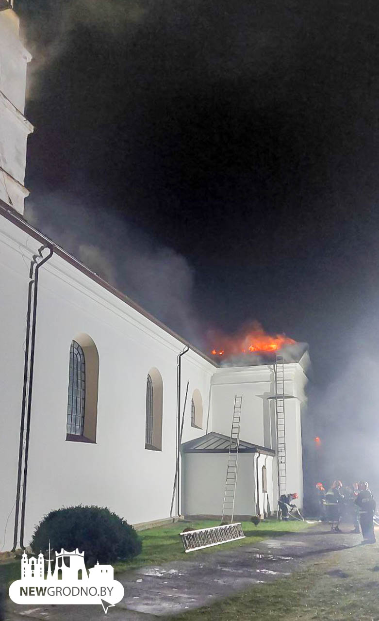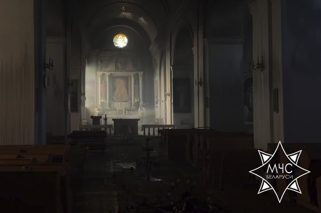 «Огнем повреждены кровля и обрешетка по всей площади здания. Закопчены стены, потолок и внутреннее убранство костела», — передает МЧС.