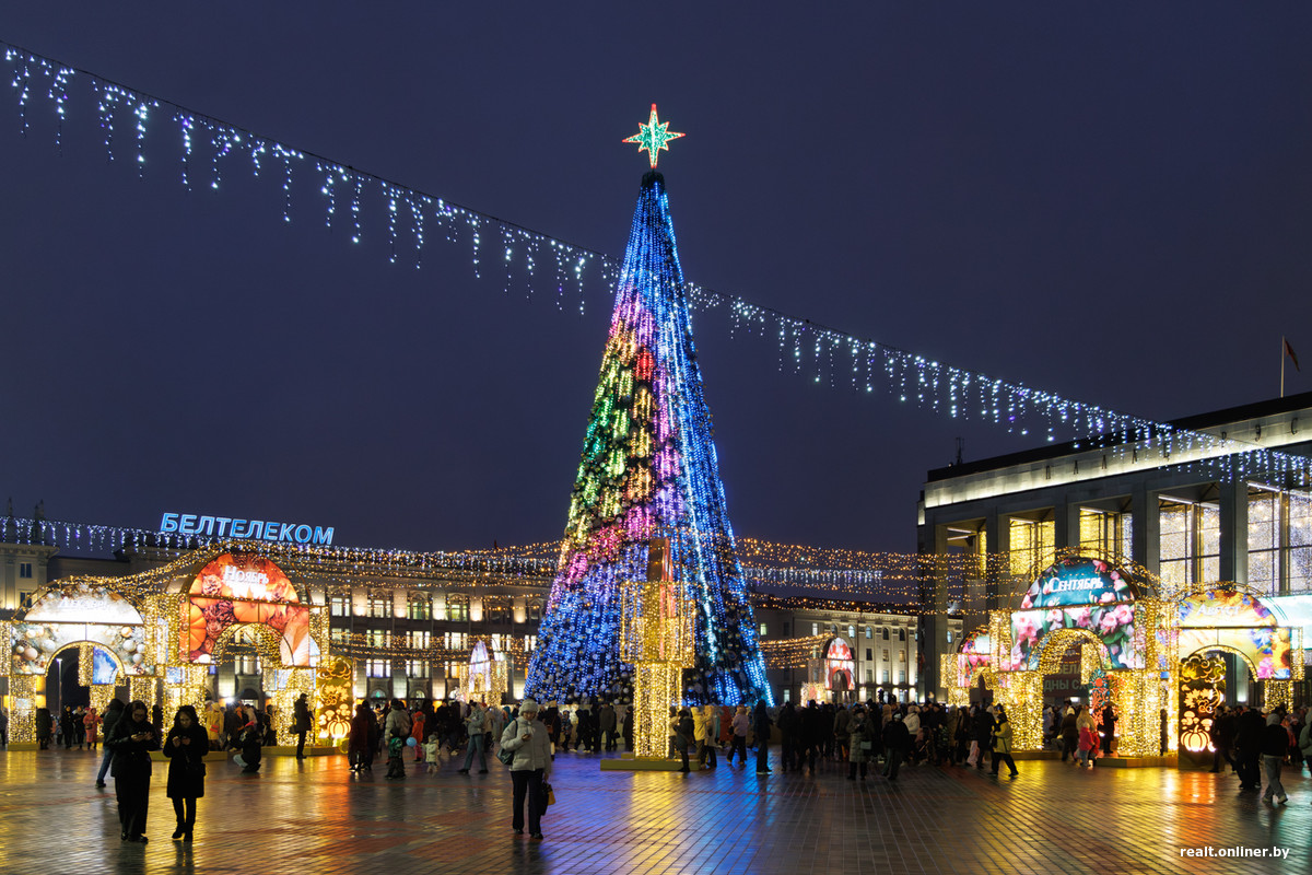 Сегодня, 15 декабря, в 17:00 в Минске зажглась главная елка страны. Новогодние огни вспыхнули на Октябрьской площади — и вместе с ними праздничный отсчет официально начался по всей Беларуси: елки одновременно загораются в других городах и райцентрах.