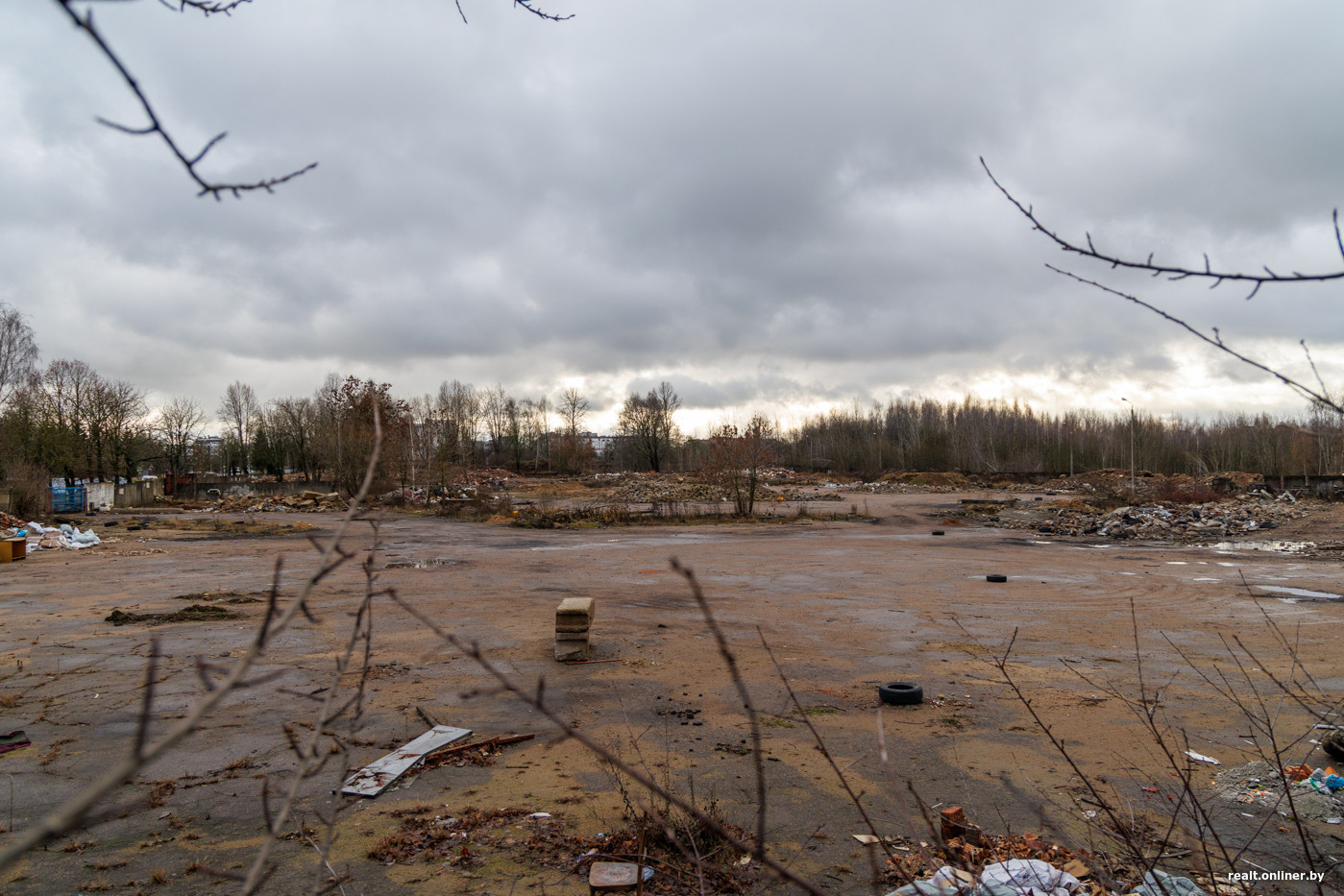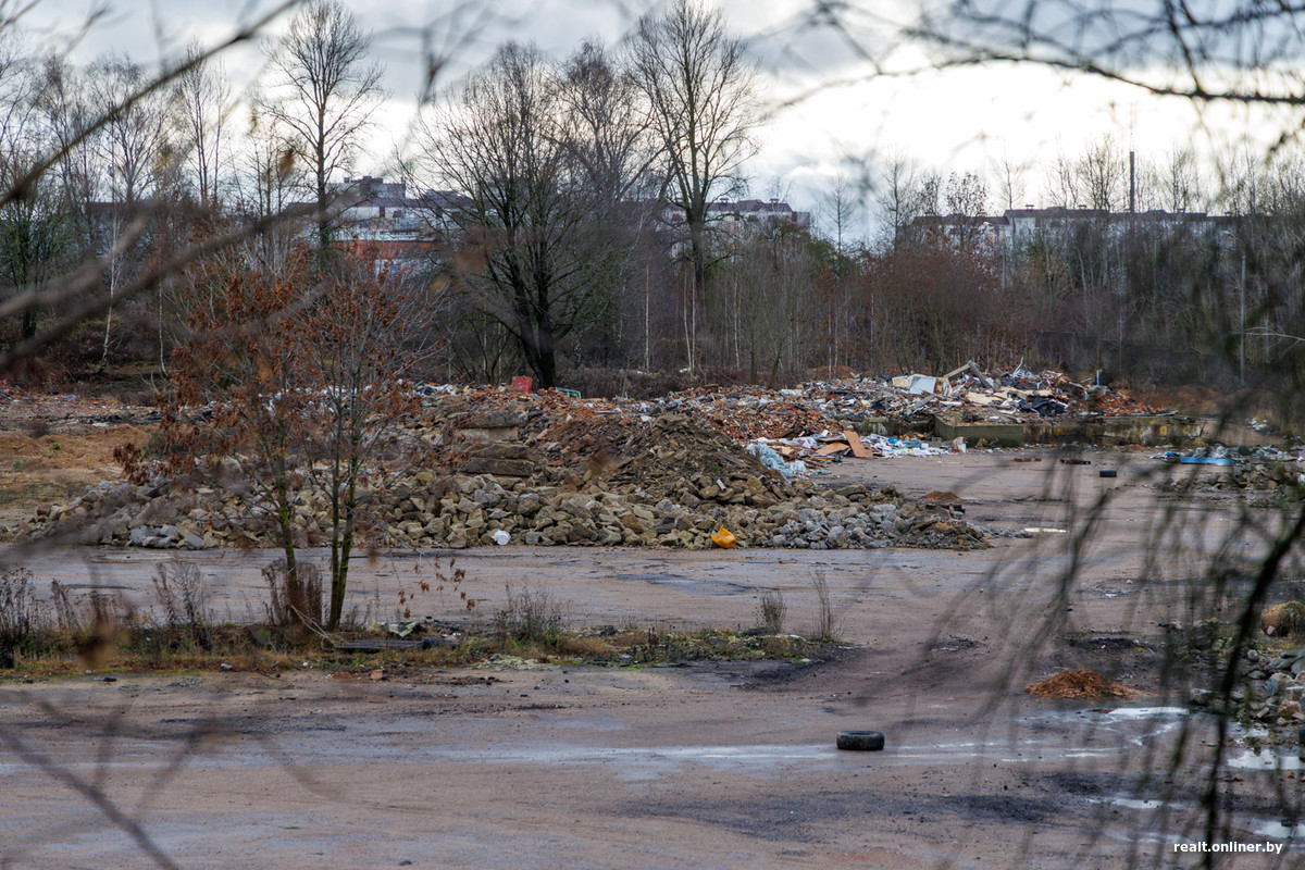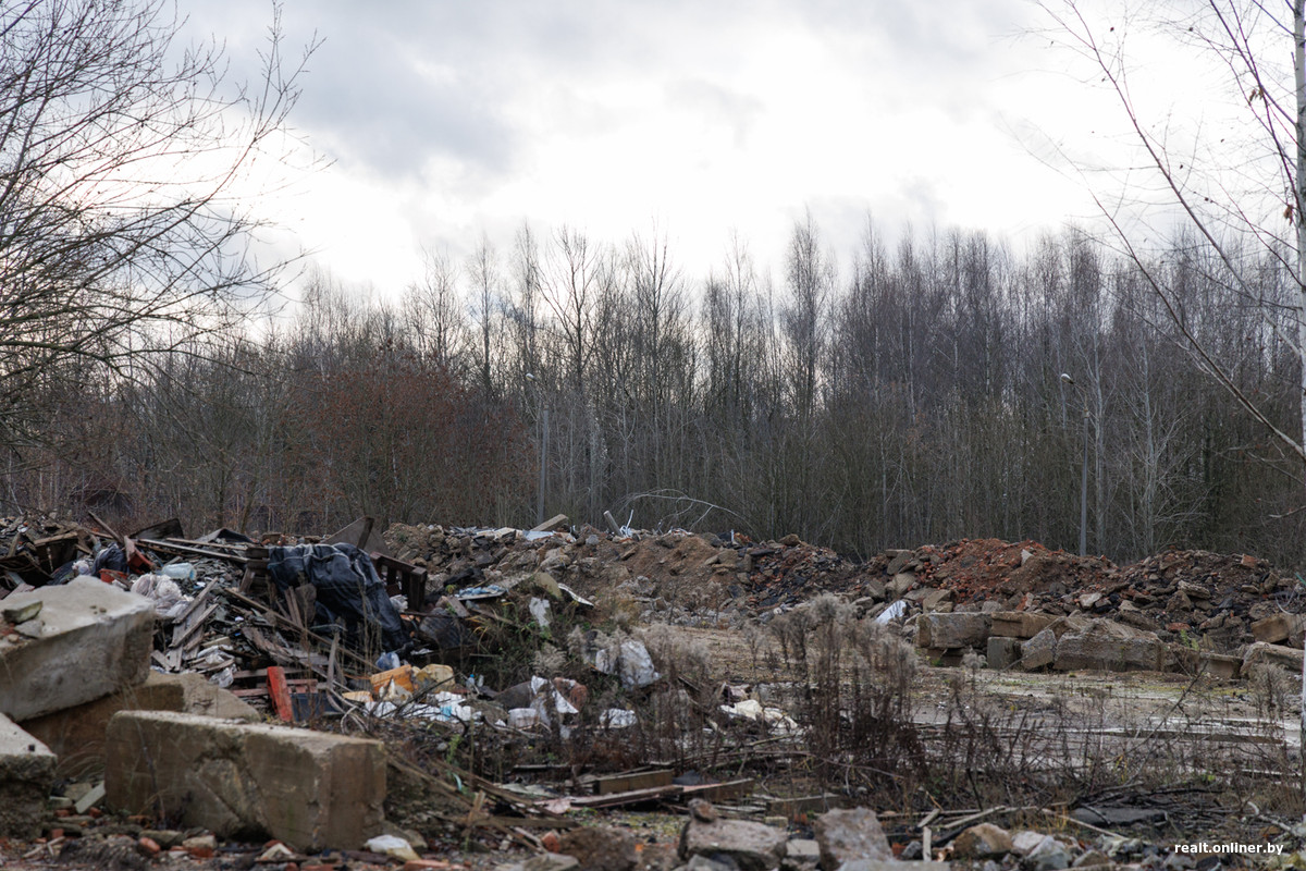 Возведение нового жилого квартала планируют начать в следующем году. Площадка же, как видите, пока не готова к приему техники и рабочих. По сути, с начала года мало что изменилось: горы строительного мусора по-прежнему лежат на своих местах, его еще вывозить и вывозить.