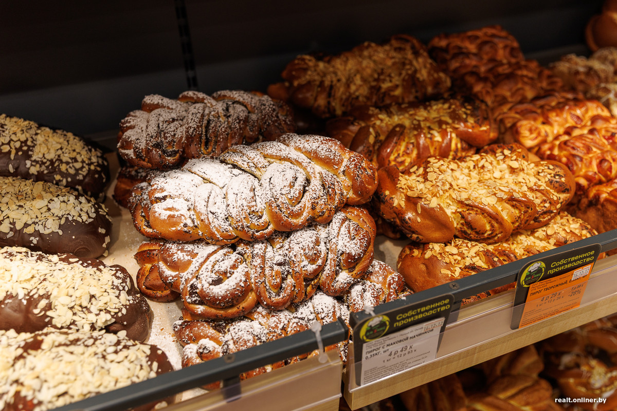 Основной акцент здесь делают на собственное производство. В магазине работает пекарня, изготавливающая любую выпечку — от хлеба и булочек до печенья. Также открыт современный кулинарный цех: на витринах сразу появляются свежие салаты, роллы, горячие блюда и мясные полуфабрикаты.
