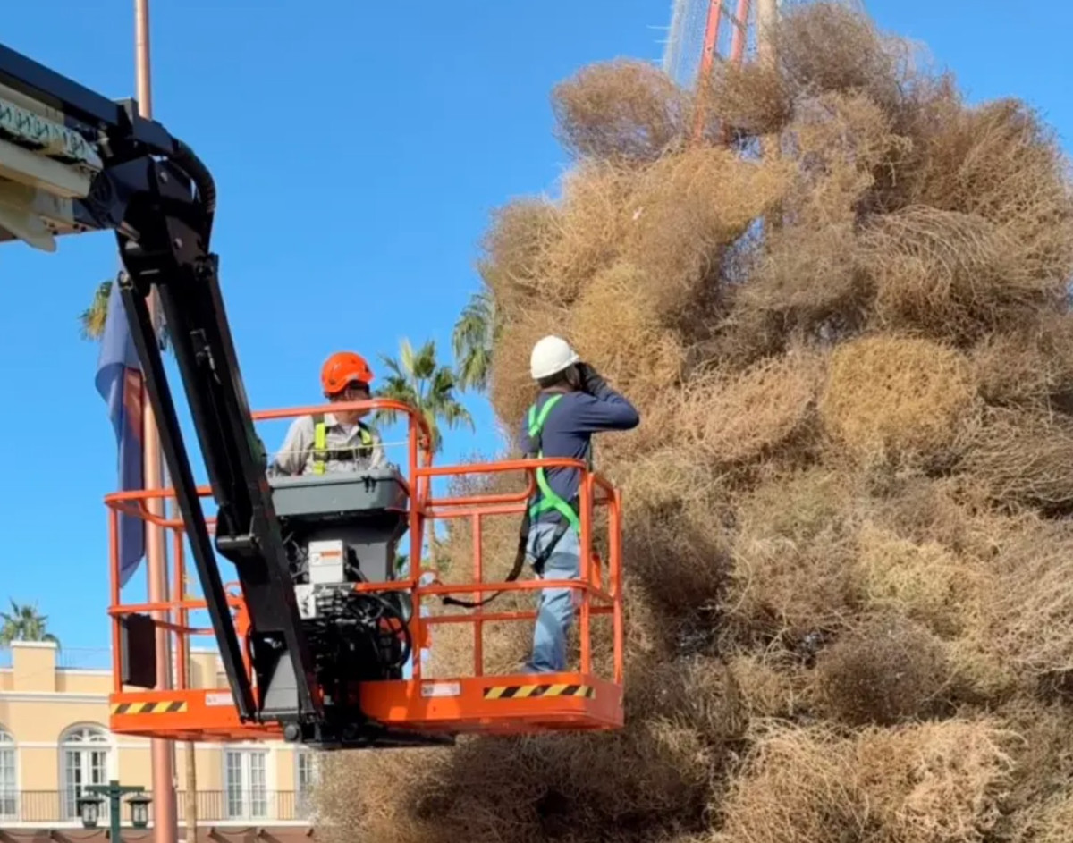 Каждый ноябрь Управление парков и зон отдыха Чендлера отправляет специалистов в окрестности города, где те собирают обычные перекати-поле, травянистые шары, образующиеся после отмирания пустынных или степных растений. В общем итоге в плену оказывается от 1,5 до 2 тысяч перекати-поле, лучшие из которых и идут потом на создание главного городского рождественского и новогоднего объекта.