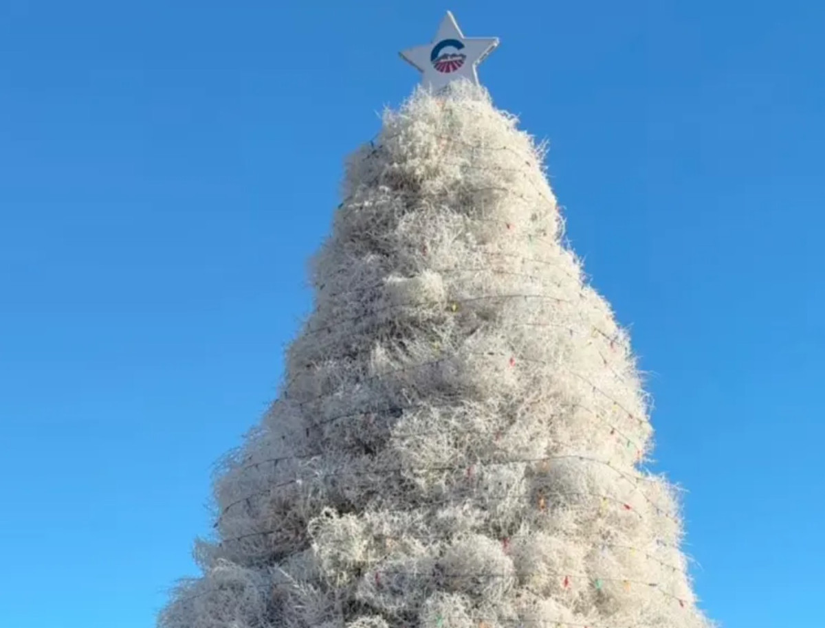 К сожалению, в американском городе Чендлер, штат Аризона, проблема с хвойными. Но праздничное настроение у местных жителей никуда не делось. В таких ситуациях елки обычно привозят из более удачливых регионов или собирают конструкцию из искусственных элементов. В Чендлере пошли другим путем и конструируют главное городское украшение из естественных для региона природных объектов. Получается красиво.