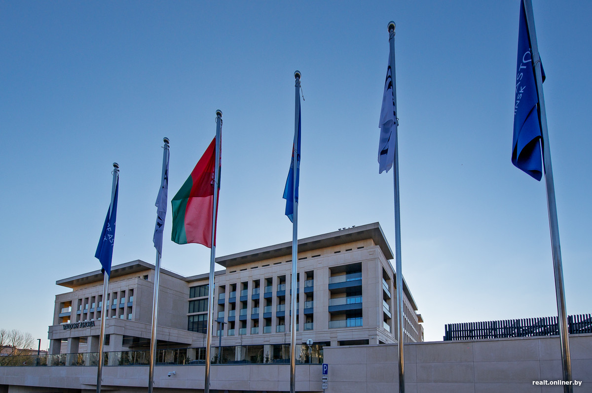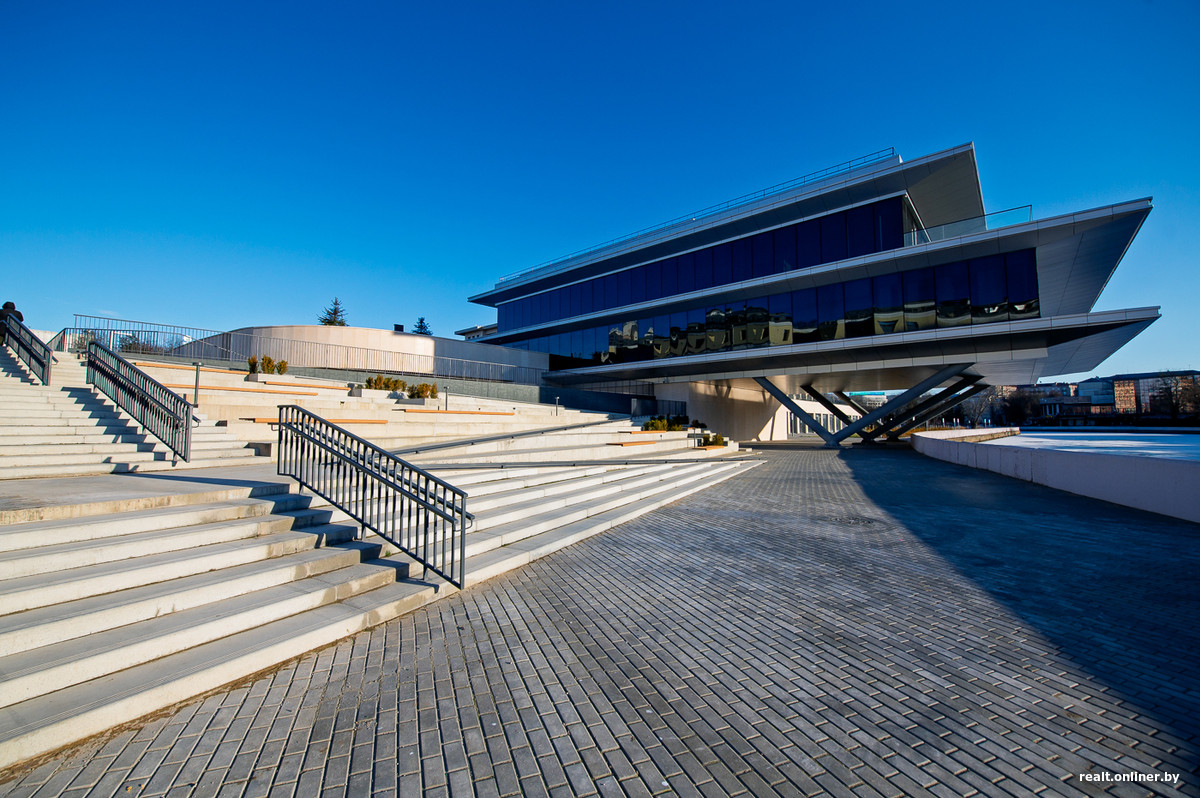 Сейчас уже с трудом вспоминается, как выглядела территория возле Свислочи раньше. Однако же ее функционал минчане помнят прекрасно — тут долгое время работала 2-я городская клиническая больница и «Белэкспо». Часть корпусов больницы вдоль улицы Богдановича реконструировали — теперь там гостиница и ресторан. А на месте выставочного комплекса выросло строгое монументальное здание отеля с нависающей над рекой стеклянной конструкцией.