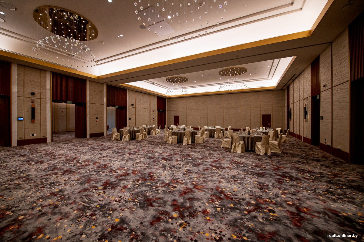 В самом первом Waldorf Astoria, который появился в Нью-Йорке более ста лет назад, постоянно гремели какие-то вечеринки. При этом не обычные, а с участием знаменитостей. Там прошла помолвка князя Монако Ренье III и Грейс Келли, состоялся праздничный ужин ко дню рождения президента Джона Кеннеди. Специально для таких тусовок была создана большая бальная комната. В минском отеле тоже есть что-то похожее — Grand Astoria Ballroom, рассчитанный на 480 гостей. Здесь можно проводить свадьбы и торжества. В теплое время они могут перетекать на улицу.