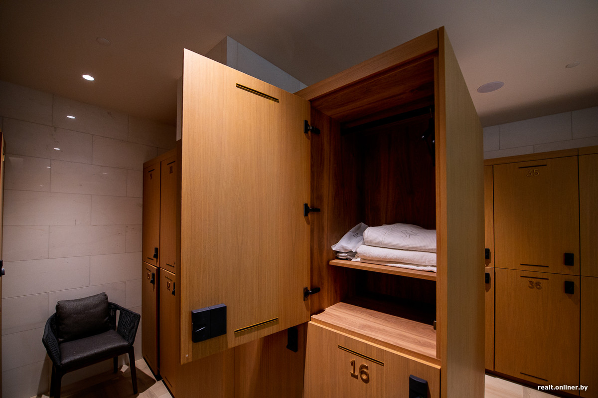 При этом гостям даже не обязательно брать с собой тапочки, халат и полотенце — все лежит и ждет их в шкафчиках раздевалок. Как в женской, так и в мужской раздевалке есть небольшая сауна для тех, кто вообще не хочет показываться на глаза другим людям.