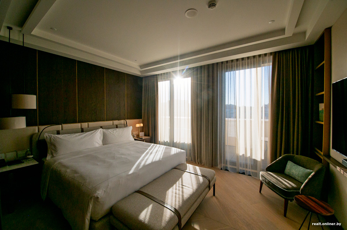— Отель гармонично интегрирован в общую планировку набережной Свислочи, где есть общественные прогулочные зоны и парковые пространства, доступные как жителям Беларуси, так и гостям города, — считает генеральный менеджер. — Внутри самого отеля доступ к отдельным зонам организован деликатно и естественно, чтобы гарантировать гостям приватность, одновременно сохраняя ощущение открытости.