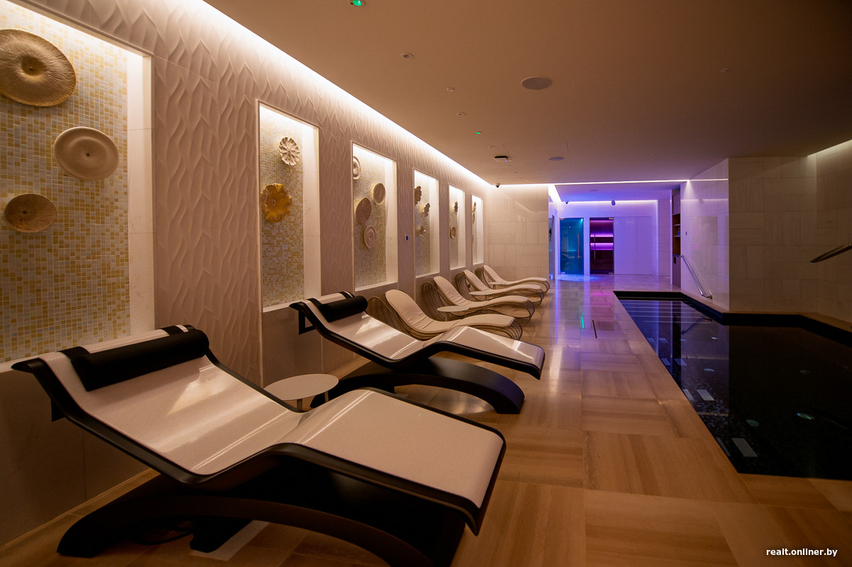 Все это выглядит красиво, но есть информация, которая расстроит минчан: посещать аквазону могут только постояльцы отеля. Для них эта опция бесплатная, так же, как и круглосуточный тренажерный зал. Существует лишь одна лазейка, позволяющая попасть сюда любому желающему, — покупка специальной спа-программы: