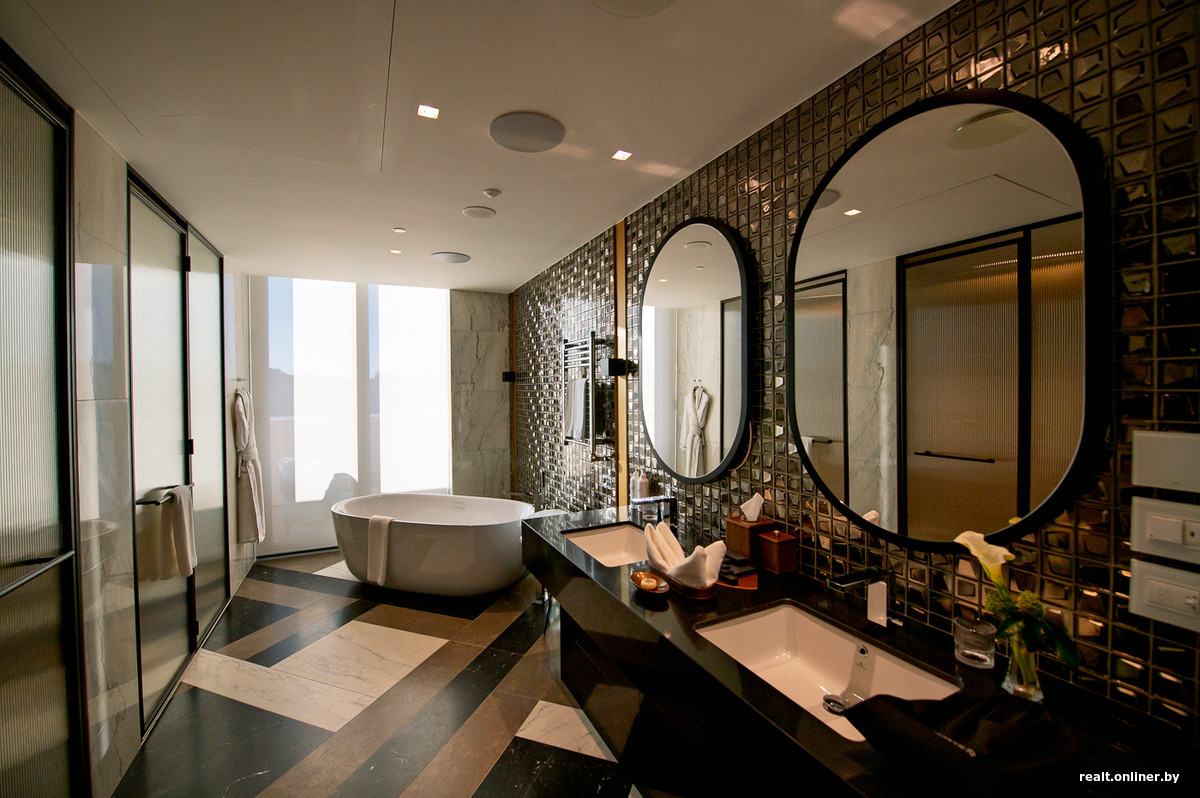 Информация о многофункциональном комплексе на улице Янки Купалы, 27 держалась в секрете все годы строительства. Минчанам оставалось только делать выводы по визуалу: вот завершилось возведение этажей, затем появились вывески, в окнах начала угадываться мебель. На данный момент здание Waldorf Astoria Minsk и территория вокруг него полностью готовы, в номера начали заезжать гости. Onlíner побывал внутри первого люксового отеля не только в Минске, но и в Беларуси. Переночевать в нем стоит от $475 до $3000. Холл с легендарными часами, роскошный спа-комплекс с бассейном, стейкхаус и спикизи-бар, а также президентский люкс с видом на Немигу — все это в нашем репортаже.