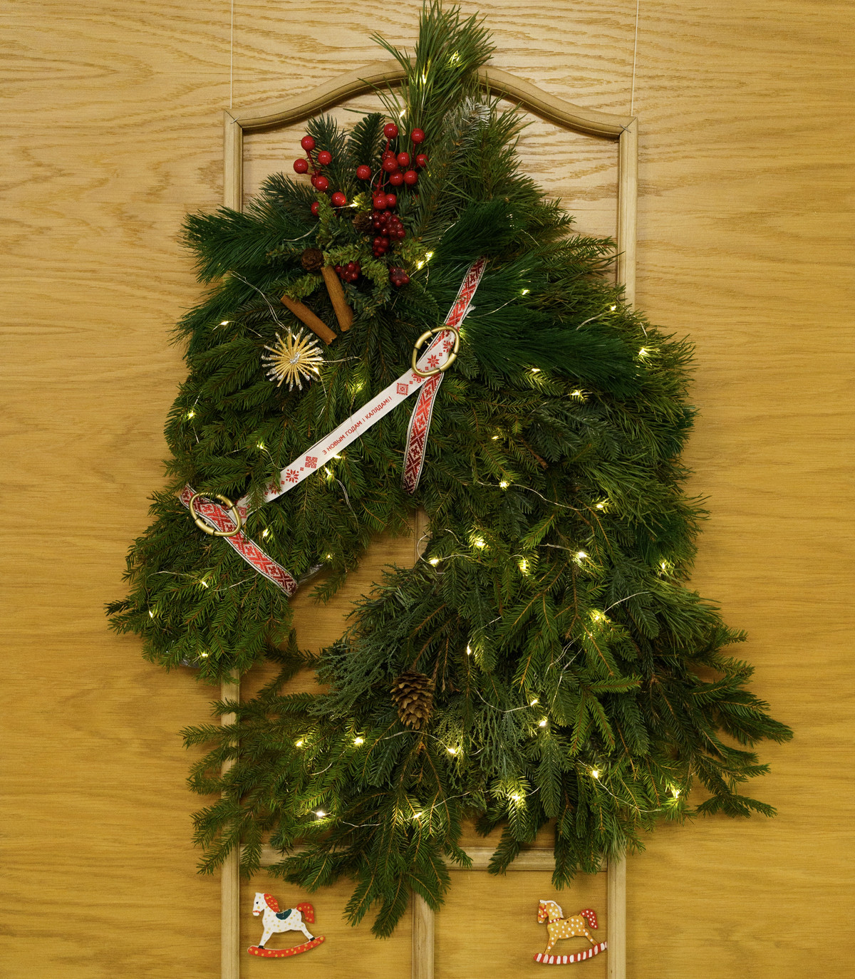 Безусловно, не обошлось и без лошади. Место для главного символа наступающего года — лошадки Моны — нашли на одной из стен лобби. «Для наших детей мы специально закупили деревянные фигурки, они с удовольствием их расписали, украсили, поставили свои автографы и повесили рядом с Моной», — показывает фото Оксана.