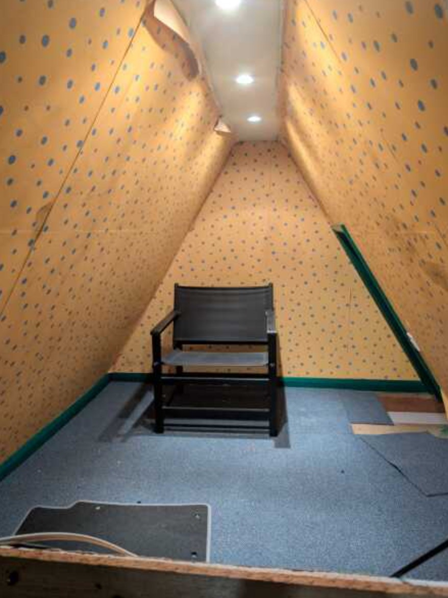 Как позже выяснилось, комната была спрятана под скатами крыши в задней части чердака — за низкой серой перегородкой. Хозяйка не исключает, что на чердаке может быть еще одна такая скрытая зона.