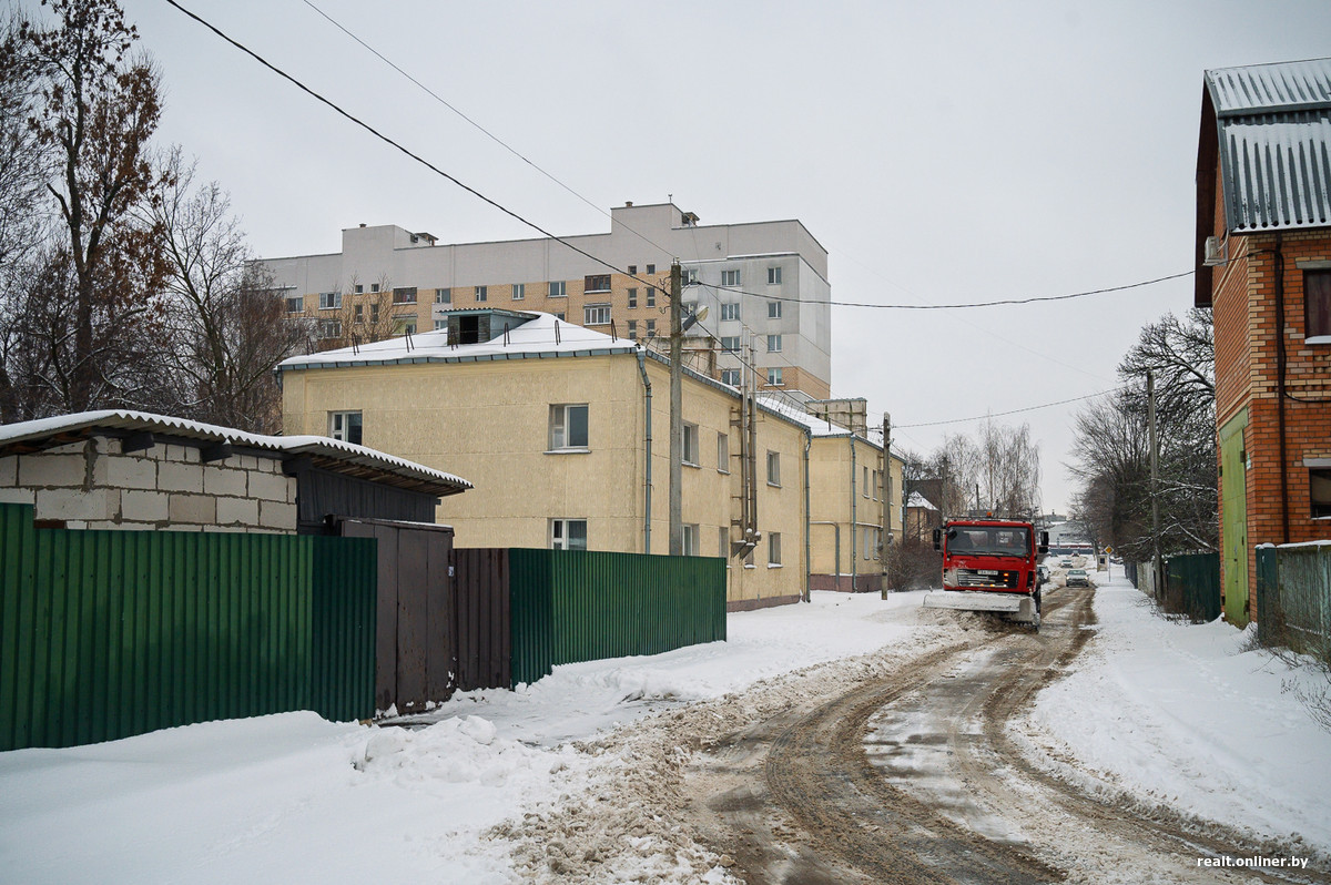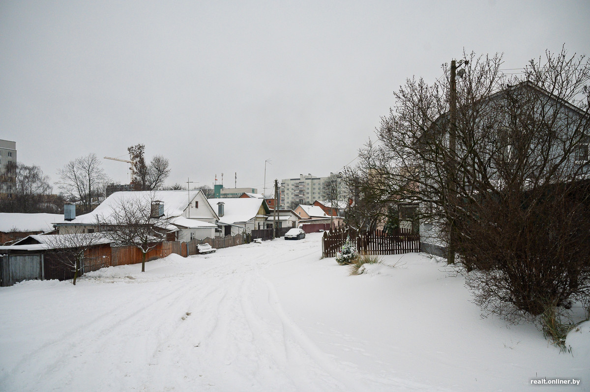Далеко не уезжаем. Поворачиваем с Серова на Любанскую и оказываемся в новом квартале под застройку. О планах освоить участок в границах улиц Пирогова, 2-й пер. Пирогова и Любанской стало известно только в начале декабря прошлого года. Объект, как это обычно и бывает в последнее время, с «отягощением». Пока это не стройплощадка, а вполне жилой уголок: здесь стоят усадьбы и двухэтажки.