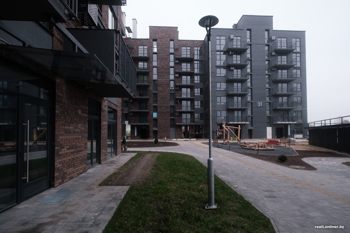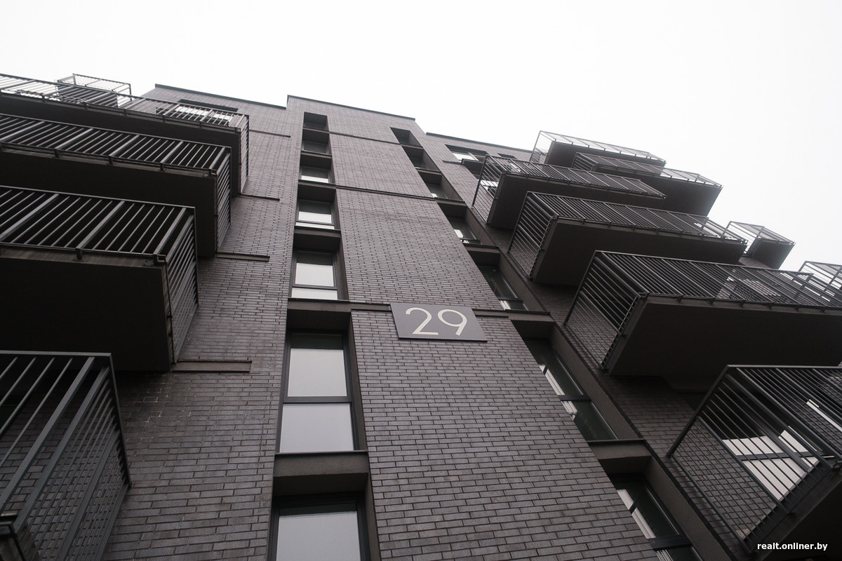 Архитектуру можно оценить уже на подъезде к ЖК: «центровые» братья выгодно выделяются среди преимущественно старой застройки. Визуально они чем-то напоминают минский жилой комплекс Depo — та же малоэтажность, европейская лаконичность, клинкерный кирпич на фасадах и небольшие открытые балконы.