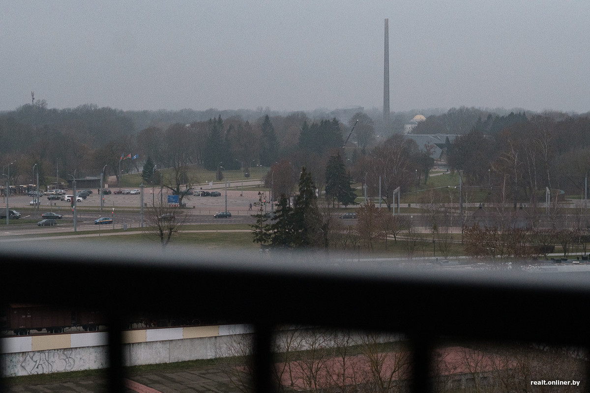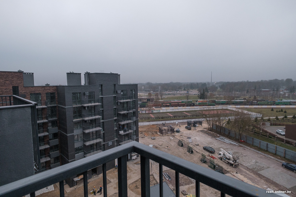 Вид с балкона здесь уже не такой завораживающий, как в предыдущем варианте, — прямо по курсу расположены старые многоэтажки. Но если повернуть голову, то можно разглядеть парк и колесо обозрения.