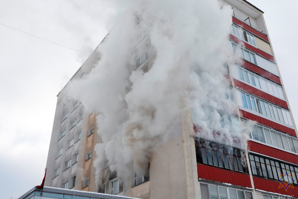 Пожар случился вчера в одной из квартир дома на Казинца, 49 в Минске. Сообщение в МЧС поступило в 12:34. Спасатели отправились на место происшествия и обнаружили нетипично густой дым, который буквально окутал все здание.