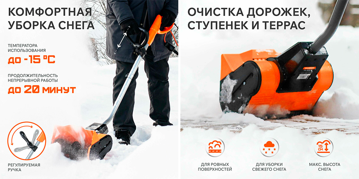 Для свежевыпавшего снега глубиной до 15—20 см лучше всего подходят аккумуляторные снегоуборщики — они весят совсем немного и экономят массу сил по сравнению с ручной уборкой.