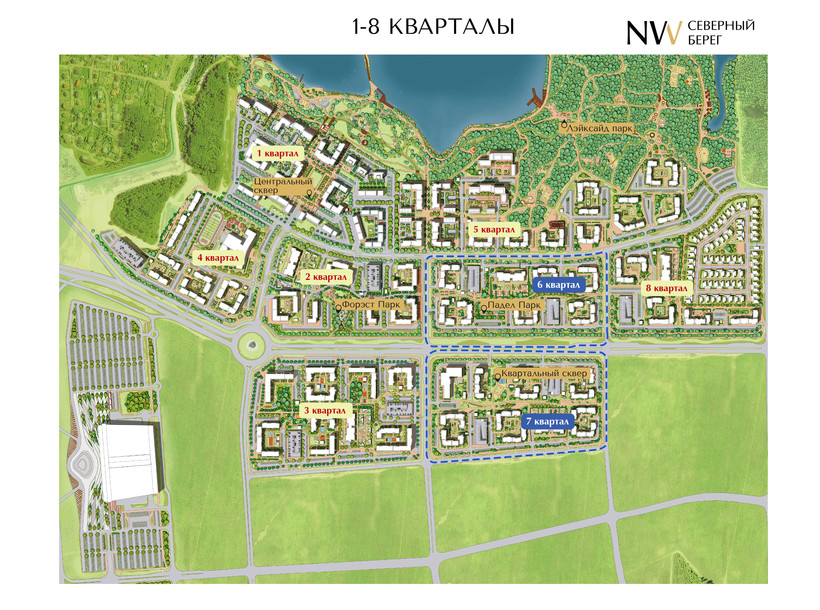 На 10 гектарах квартала №6 построят 9 домов высотой 6—10 этажей на 84 тысячи «квадратов». Это будет самый спортивный квартал, обещает девелопер. Падел-парк с игровыми зонами, местами отдыха и собственно двумя кортами для падела займет полгектара.