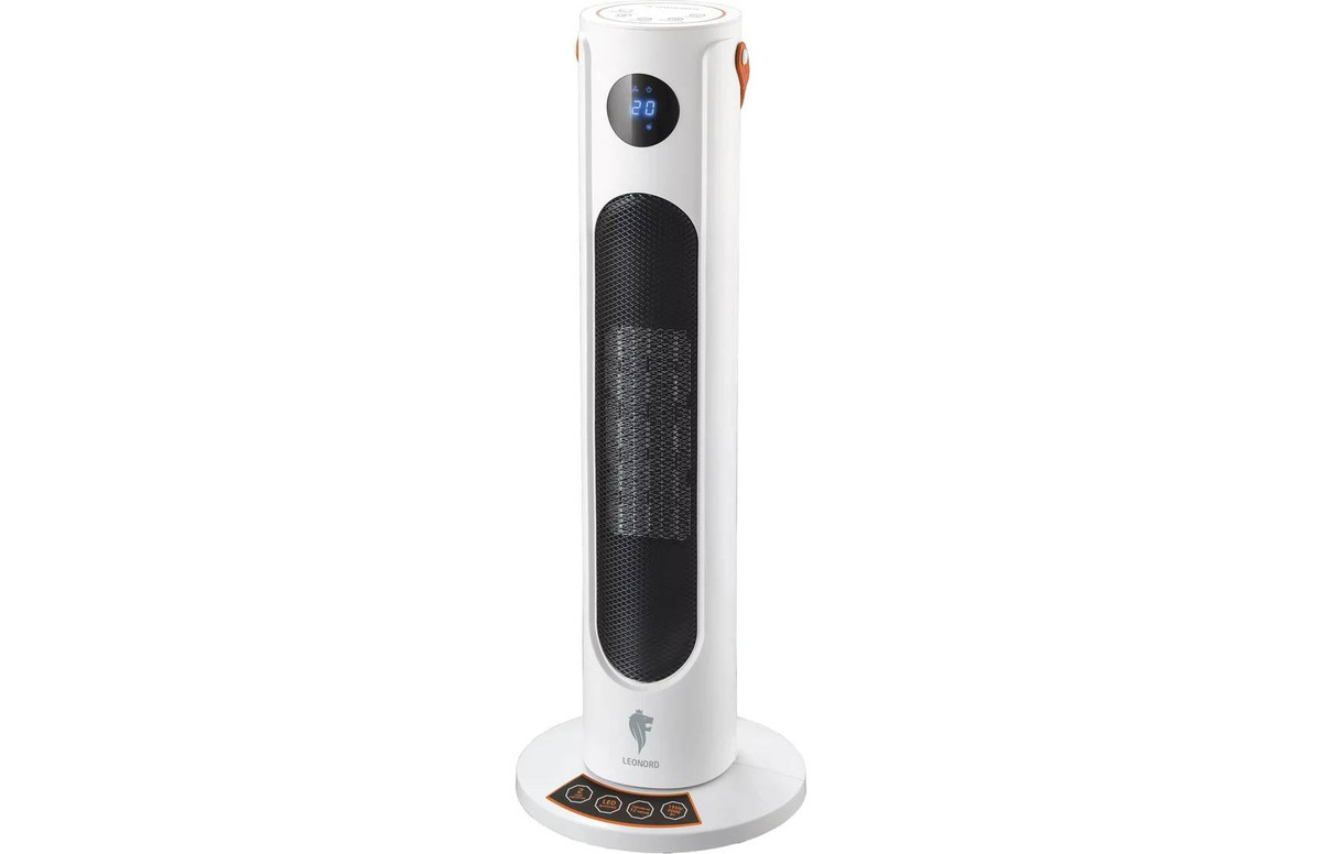 По формату это вертикальный столбик с широким углом поворота, который равномерно разгоняет теплый воздух по комнате. Мощность — до 2000 Вт, чего хватает для помещений площадью до 20 кв. м. Керамический нагревательный элемент быстро выходит на рабочий режим, есть два уровня мощности и режим поддержания температуры.