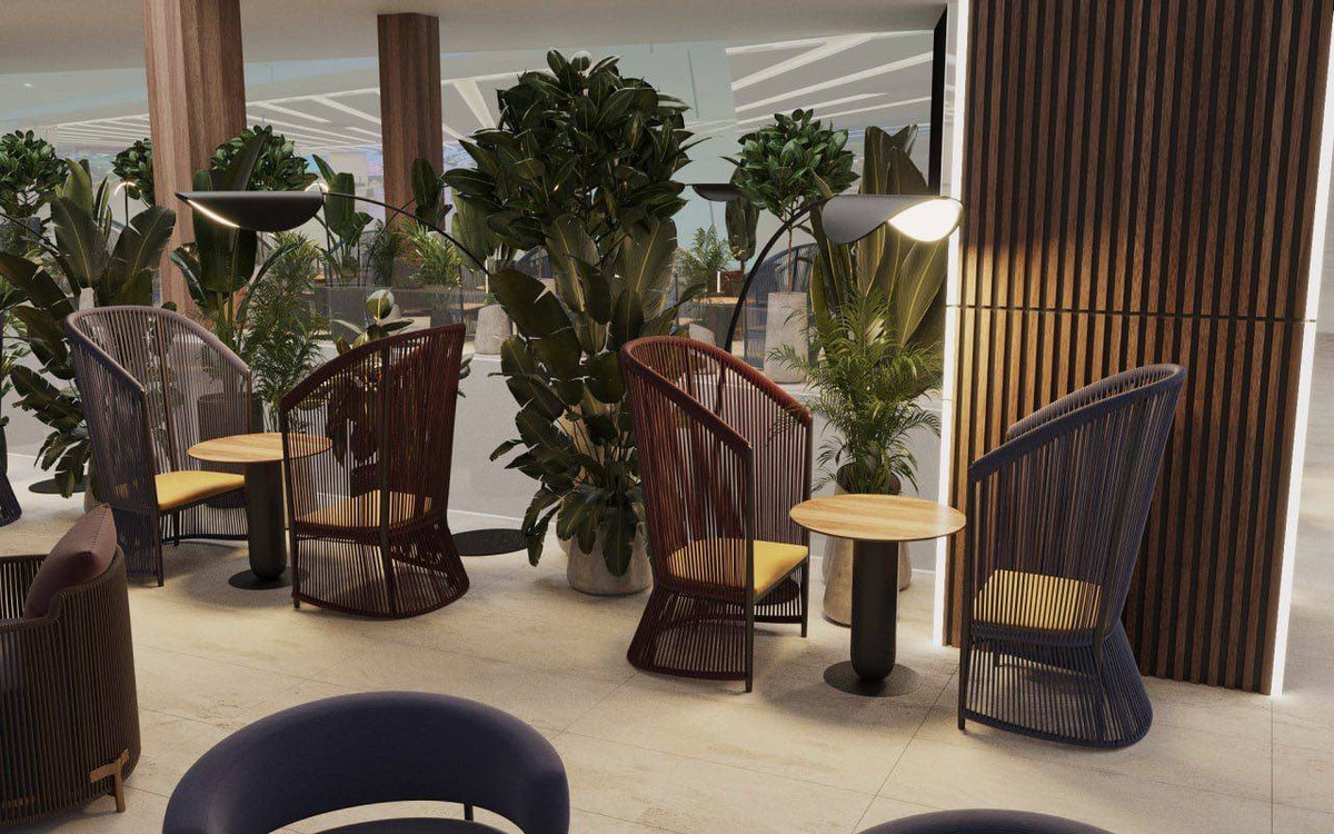 Большую его часть займут ресторанные столики, глубокие диваны и удобные кресла. С потолка будут свисать 286 «солнц» — светильников сферической формы. Еще из необычного — «лес» над головой. Потолок украсят огромной инсталляцией из искусственной зелени. В центре разместится открытый бар. Можно будет занять место за стойкой и пить кофе или коктейли.