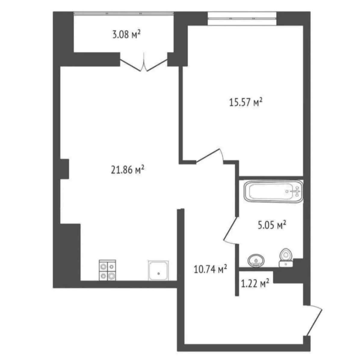 В жилом комплексе «Минск-Мир» появилось очередное объявление о сдаче жилья с черновой отделкой — на улице Белградской. Формально это двухкомнатная квартира, но пока без перегородок — внутри только общее пространство. Площадь — почти 57 «квадратов».